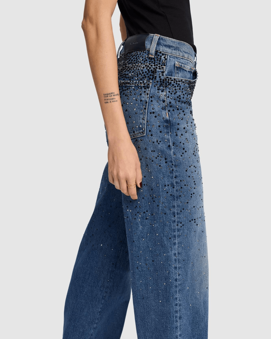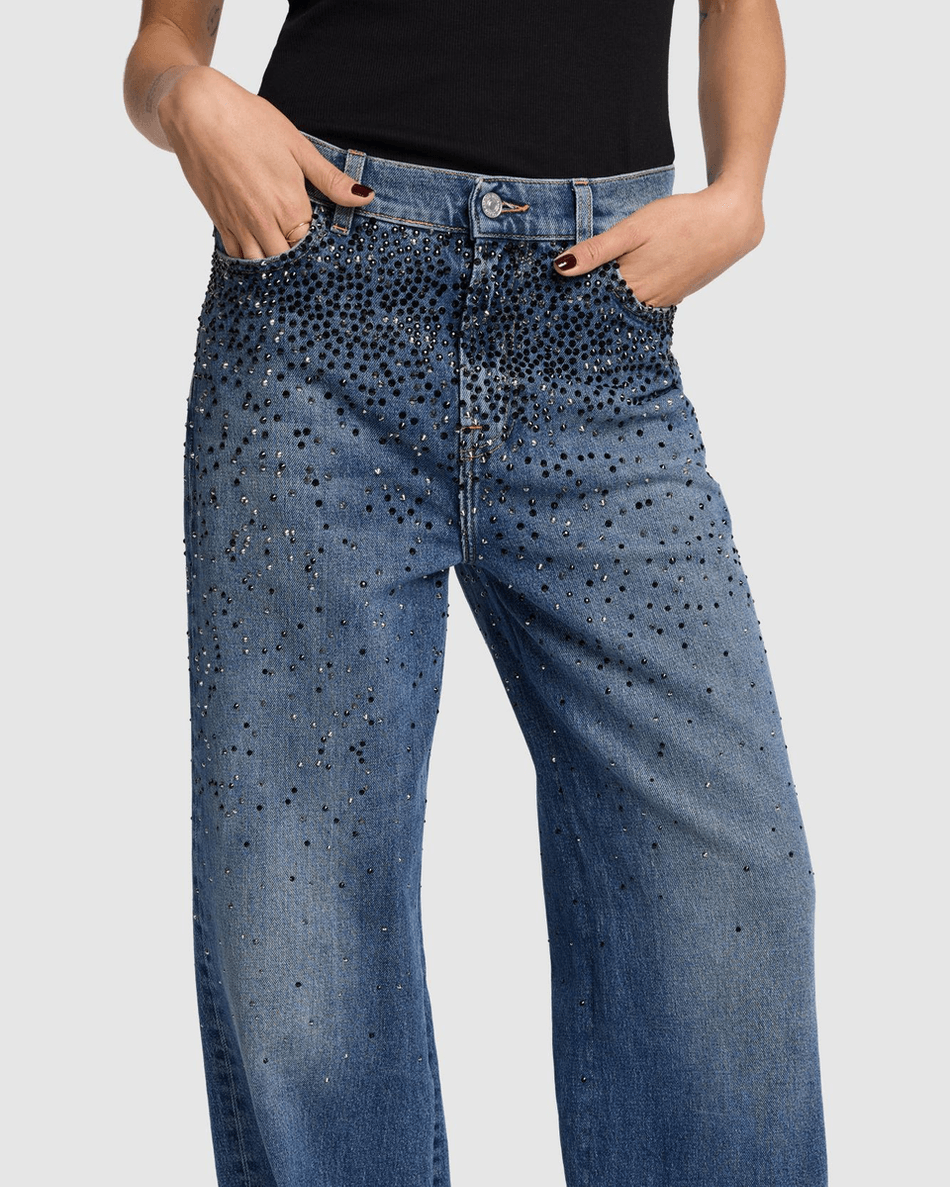 Whether you’re heading to brunch or a night out, these jeans will keep you looking effortlessly stylish. The unique black crystal embellishments add a luxurious twist, making these jeans stand out in any wardrobe.