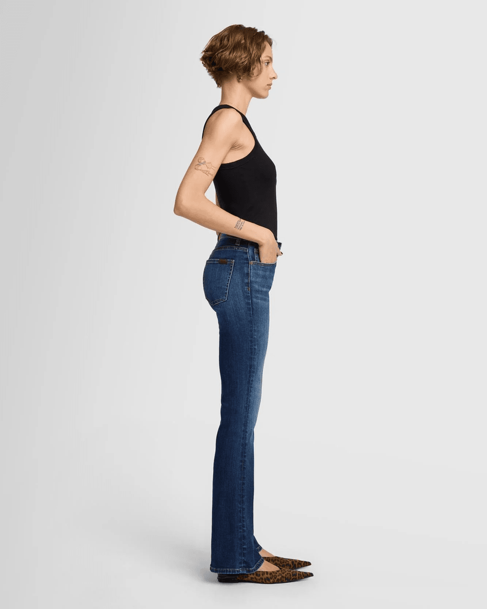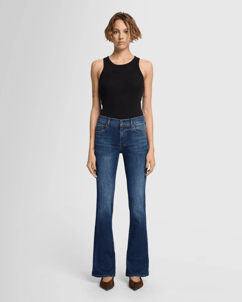 The 7 For All Mankind Slim Illusion Bootcut in Grand Canyon features a chic bootcut flare that balances your proportions and pairs effortlessly with a variety of footwear. The medium blue wash is perfect for both casual outings and more polished events, making these jeans a versatile addition to your wardrobe. Enjoy the subtle whiskering and sanding details that lend a touch of character to your look.