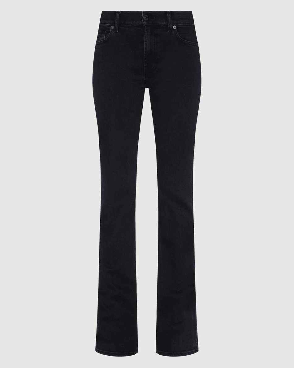 Elevate your wardrobe with the 7 For All Mankind Slim Illusion Bootcut in Saturday Night. This stylish mid-rise bootcut jean is designed to fit snugly through the hips and thighs, culminating in a classic bootcut flare that flatters all body types. Experience a supportive, cozy hug that will keep you comfortable all day long.