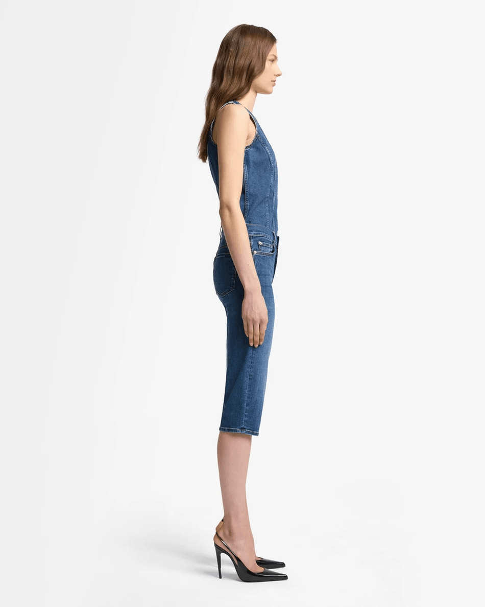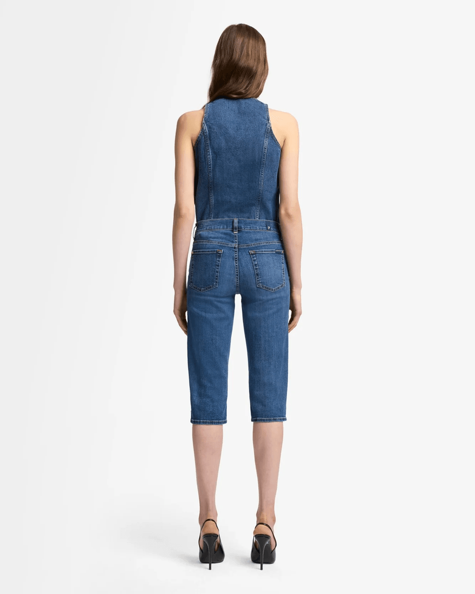 Elevate your denim collection with the 7 For All Mankind Slim Illusion Capri in Soho Light. This chic capri is designed to enhance your silhouette, providing a flattering fit that’s perfect for any occasion.