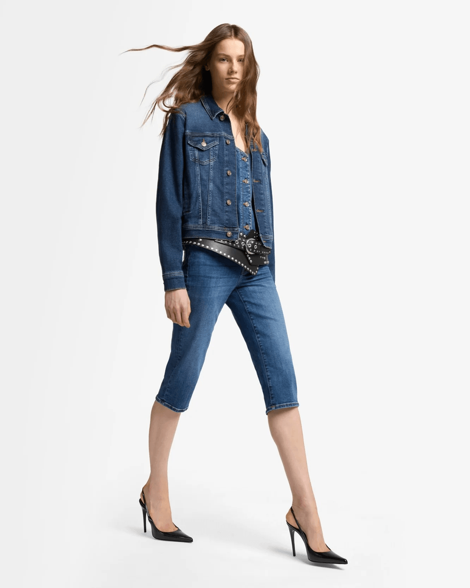 The 7 For All Mankind Slim Illusion Capri in Soho Light combines style and comfort effortlessly. With its light indigo wash and subtle whiskering, this capri offers a modern appeal that’s perfect for day-to-night wear. Whether you’re headed to brunch or out for an evening event, this versatile piece ensures you look chic and feel great.