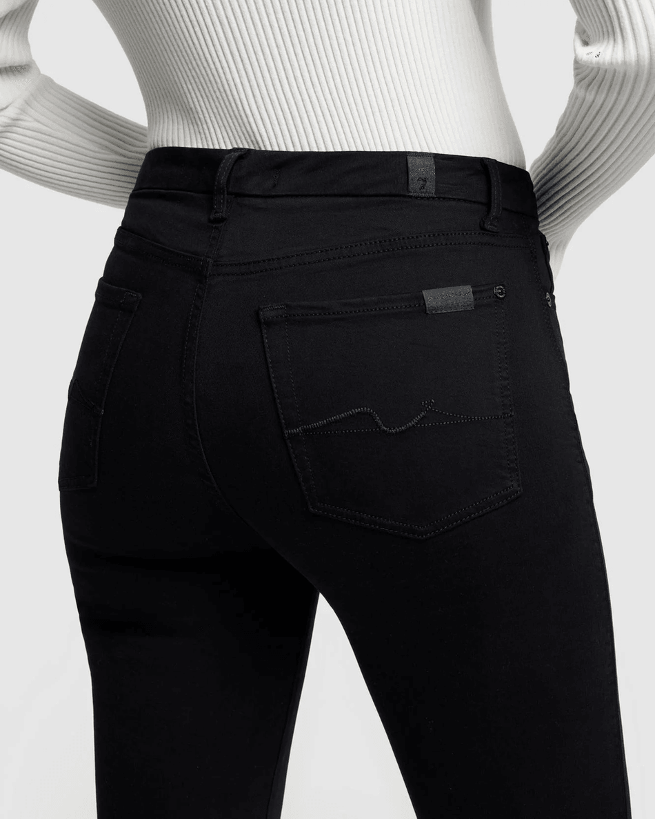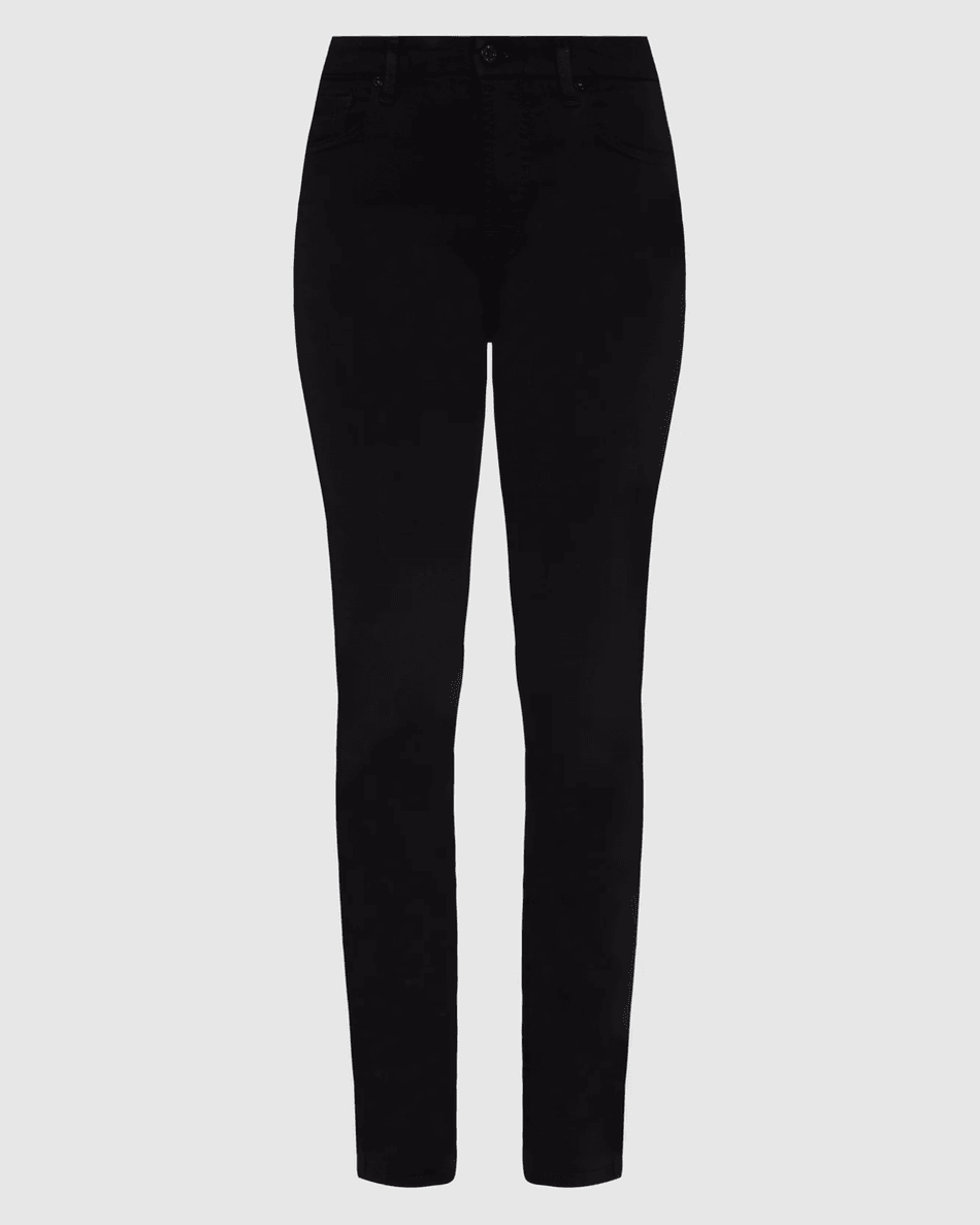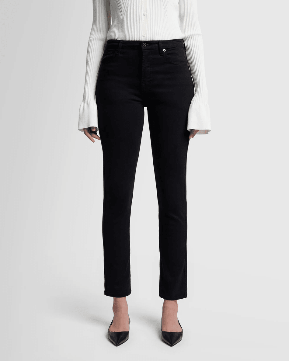 Discover the 7 For All Mankind Slim Illusion High Rise Kimmie Straight in Rinsed Black