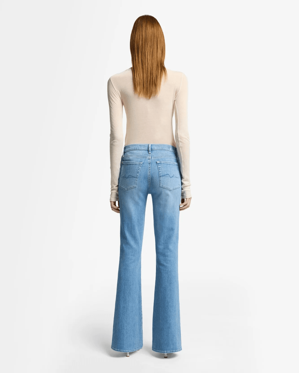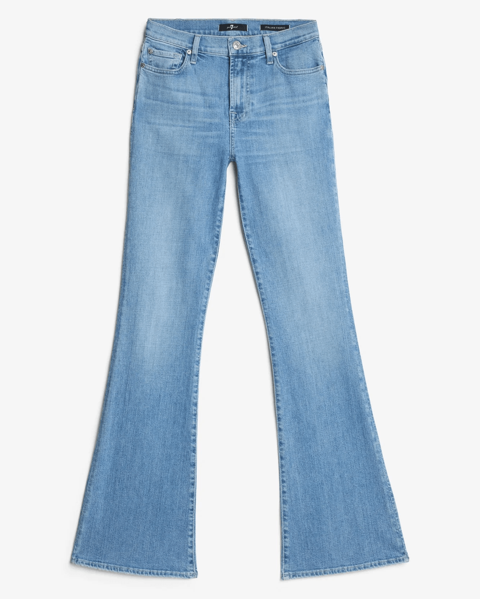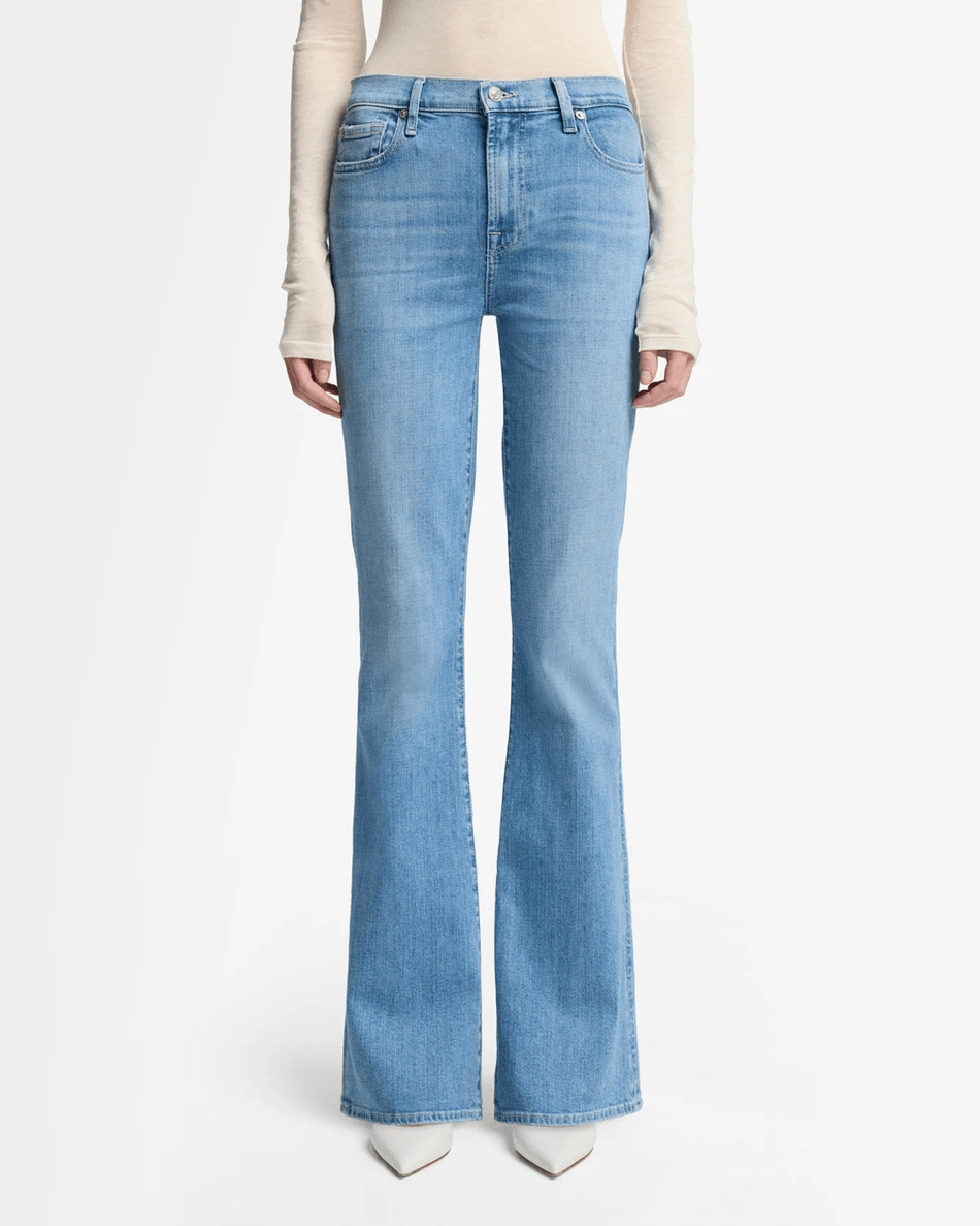 Experience the perfect blend of comfort and style with the 7 For All Mankind Slim Illusion High Waist Ali in Bloom Bloom. This high-rise flare jean is designed to enhance your silhouette, offering a full-length look that hugs your curves and flares at the knees for a stunning leg-lengthening effect.