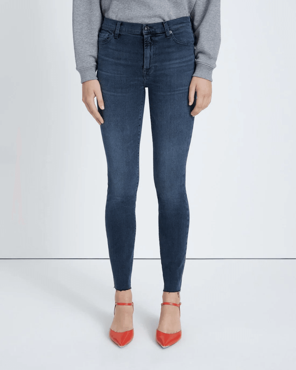 Discover the 7 For All Mankind Slim Illusion High Waist Ankle Skinny in Alleyway