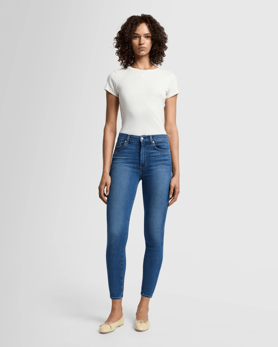 Discover the 7 For All Mankind Slim Illusion High Waist Ankle Skinny in Love Story
