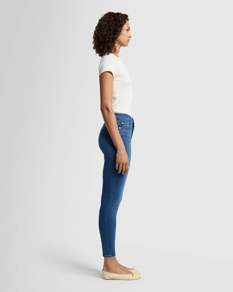 Don’t miss out on the perfect blend of style and comfort. Elevate your wardrobe with the 7 For All Mankind Slim Illusion High Waist Ankle Skinny in Love Story and experience the difference. Order now and embrace your new favorite pair of jeans!