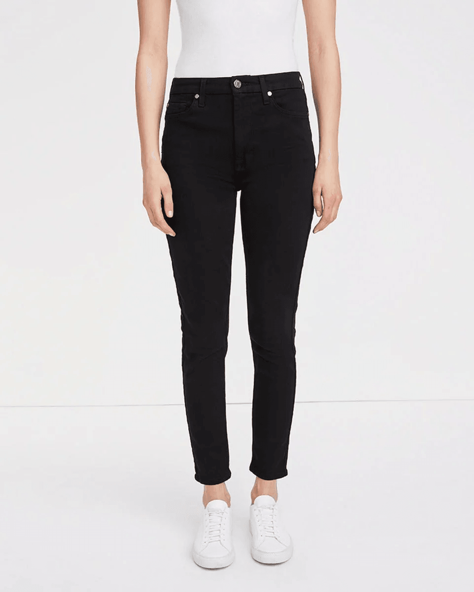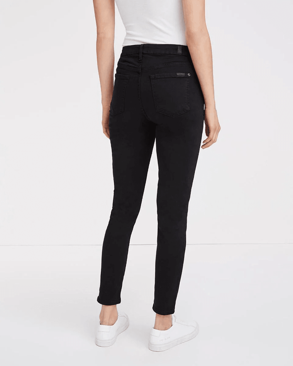 Discover the 7 For All Mankind Slim Illusion High Waist Ankle Skinny in Luxe Black