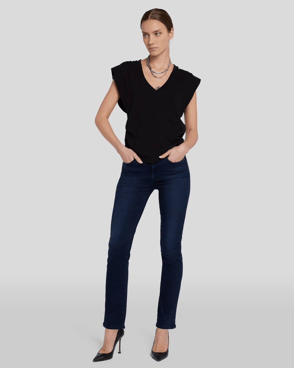 Discover the 7 For All Mankind Slim Illusion High Waist Kimmie Straight in Twilight Blue