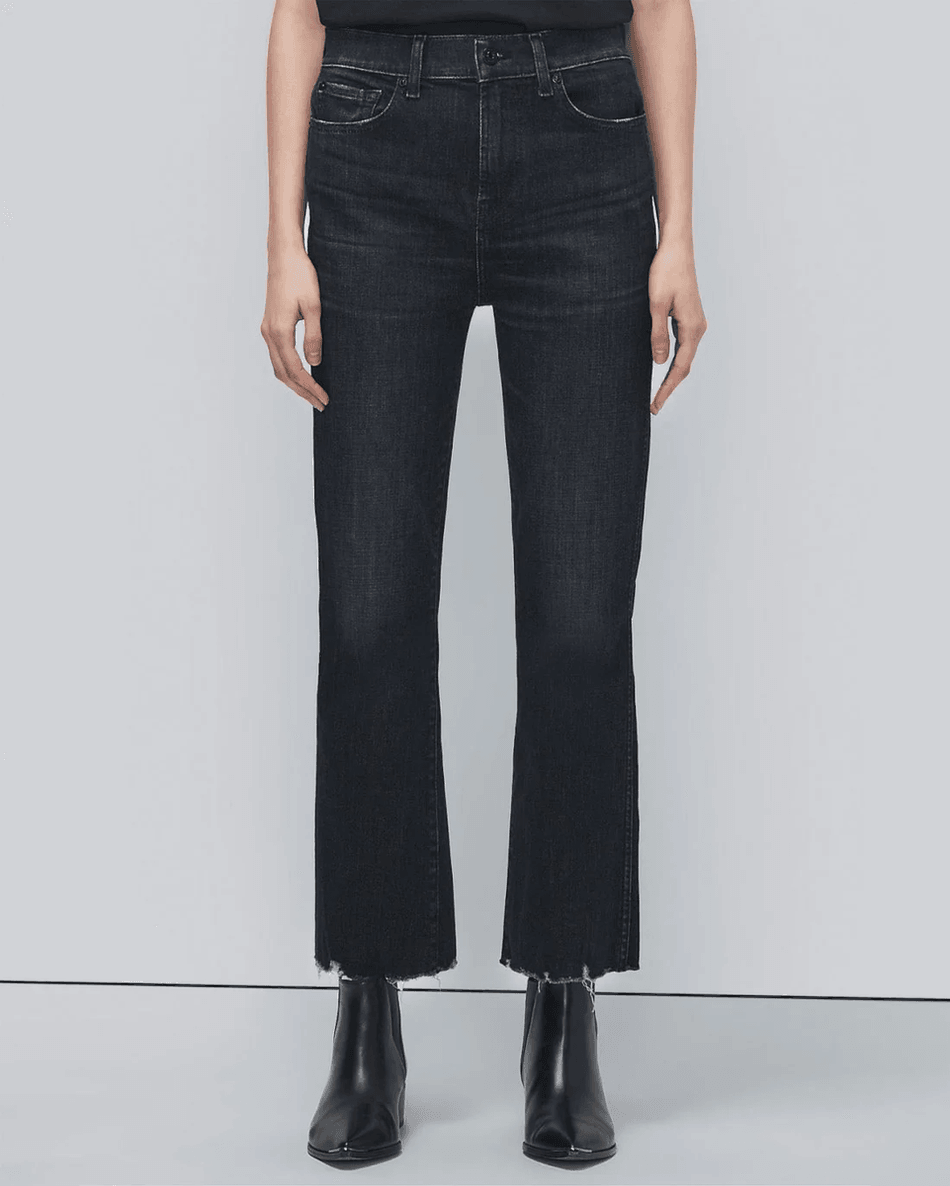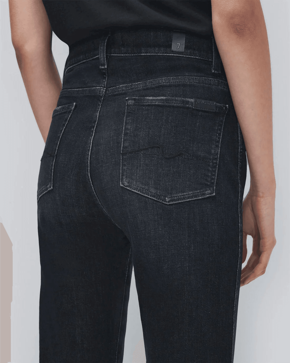Elevate your denim collection with the 7 For All Mankind Slim Illusion High Waist Slim Kick In Savage. This stylish jean is designed to provide a flattering, high-waisted silhouette that pairs perfectly with any outfit. Crafted from innovative Slim Illusion earthkind denim, it offers both comfort and sustainability.