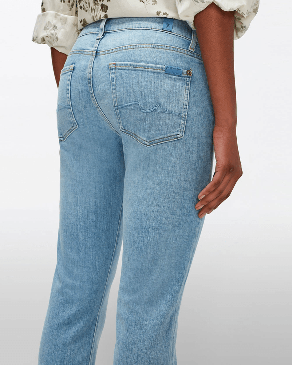 Step into style and comfort with the 7 For All Mankind Slim Illusion Kimmie Bootcut. This mid-rise bootcut jean is designed for those who appreciate a perfect blend of fashion and function. Crafted with our innovative Slim Illusion Earthkind fabric, these jeans are not only flattering but also eco-friendly.