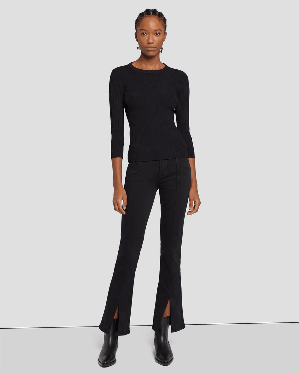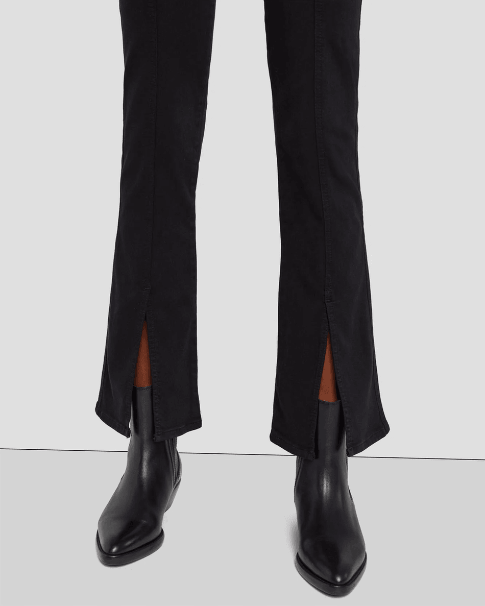 The 7 For All Mankind Slim Illusion Kimmie Straight in Black features a versatile design that makes it easy to dress up or down. Whether paired with a chic blouse for a night out or a casual tee for daytime errands, these jeans are your go-to choice. The front slits add a unique touch, making these jeans a standout piece in any collection.