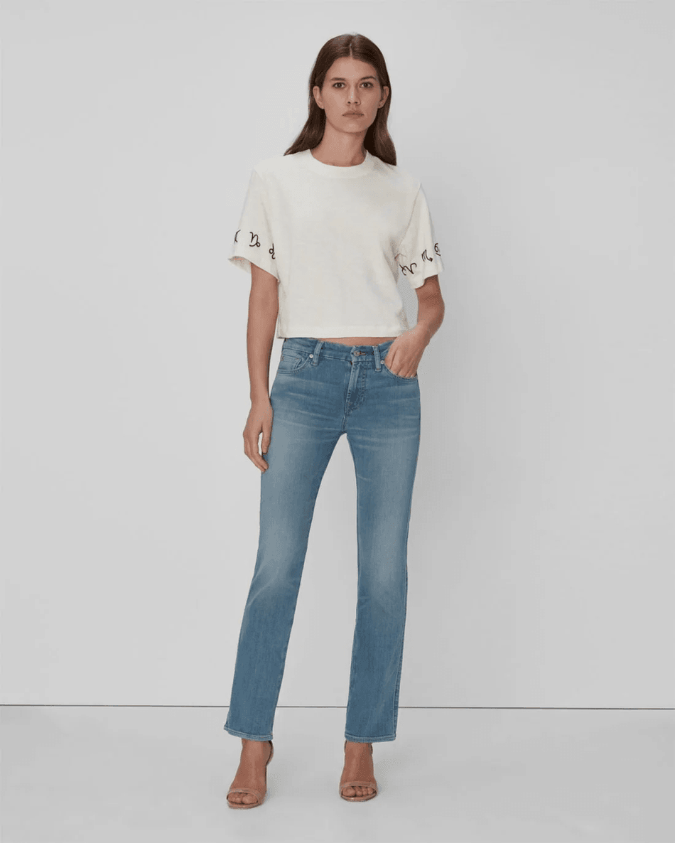 Discover the 7 For All Mankind Slim Illusion Kimmie Straight Jeans in Delphi