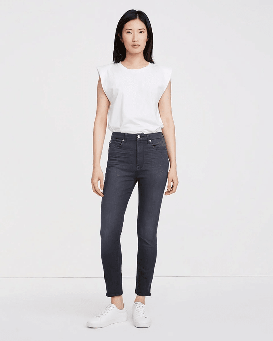 The 7 For All Mankind Slim Illusion Luxe High Waist Skinny in Black Black is not just a pair of jeans; it’s a wardrobe essential. From casual outings to dressier occasions, these jeans transition seamlessly with your style. The high waist design elongates your legs, while the full-length cut offers a polished look that pairs effortlessly with heels or flats.