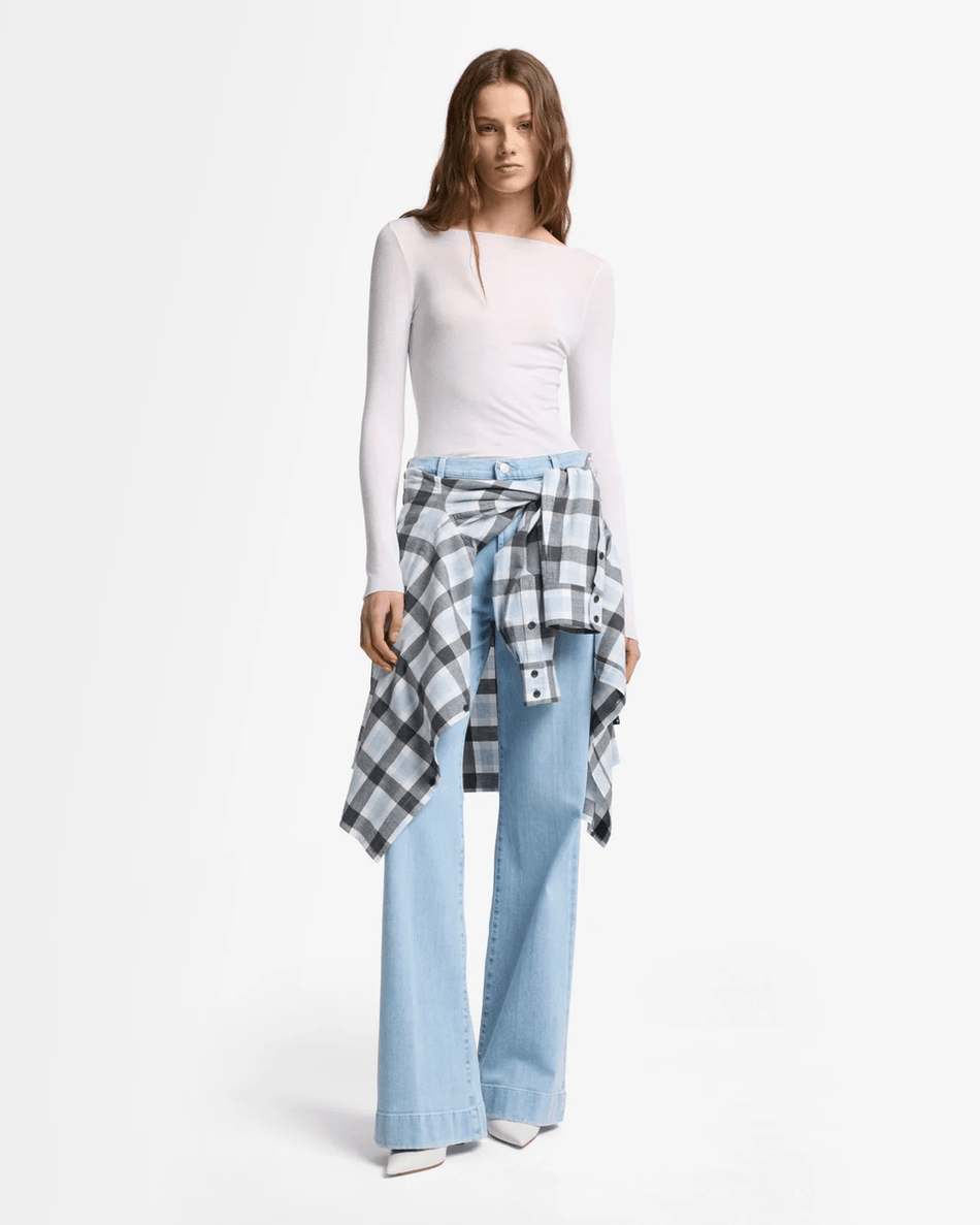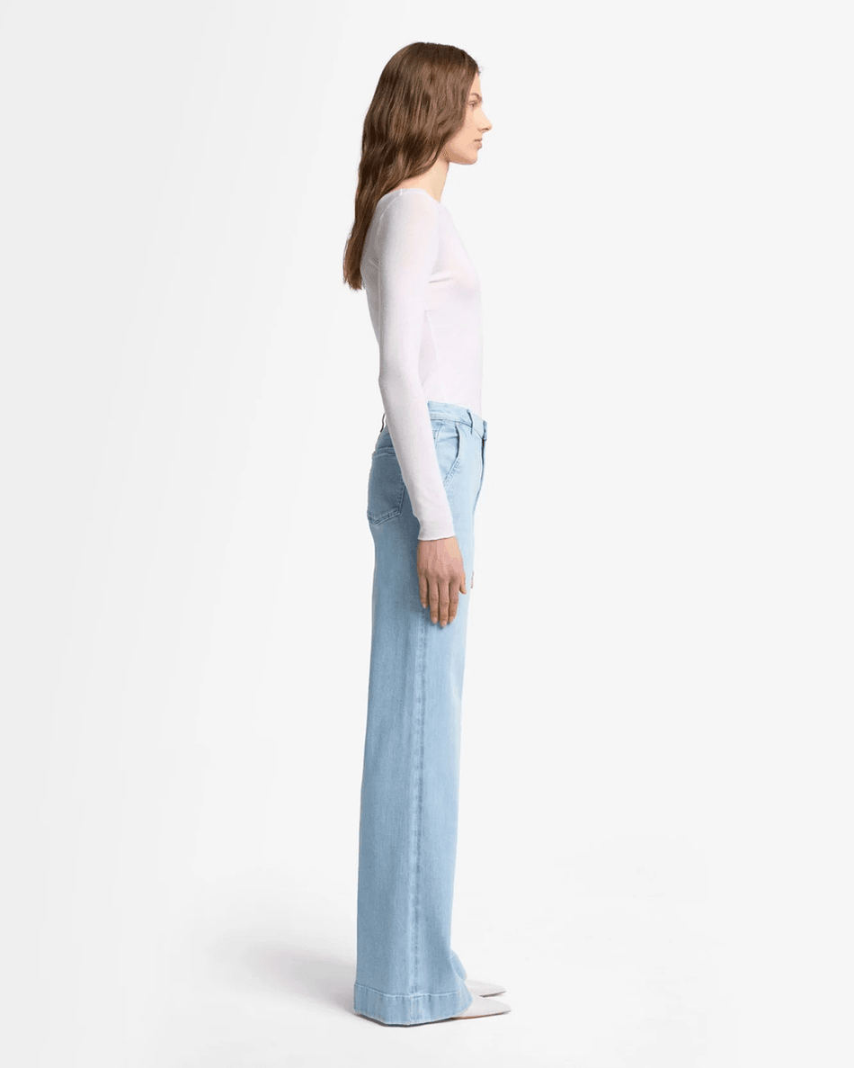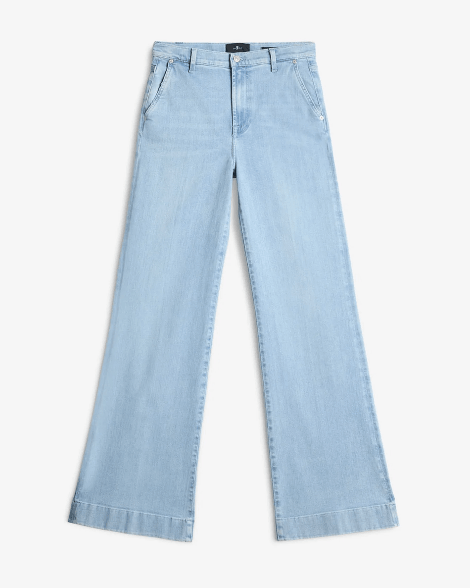 The 7 For All Mankind Slim Illusion Modern Dojo in Olina fits snugly through the hips and thighs, creating a streamlined silhouette that flatters your figure. The wide flare leg adds a touch of elegance, making these jeans a go-to choice for both casual and formal settings.