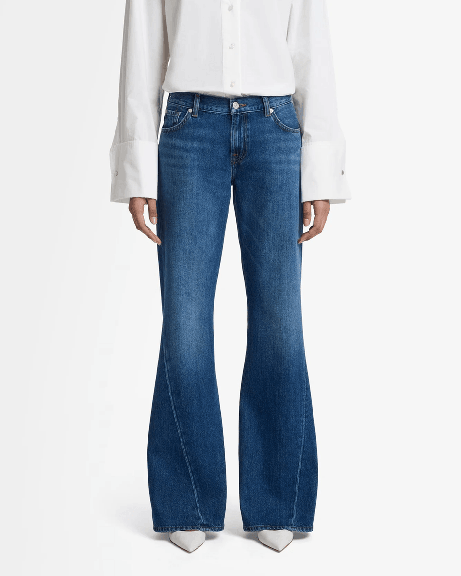 Discover the 7 For All Mankind Slim Illusion Twisted Seam Spencer Flare in Mesa