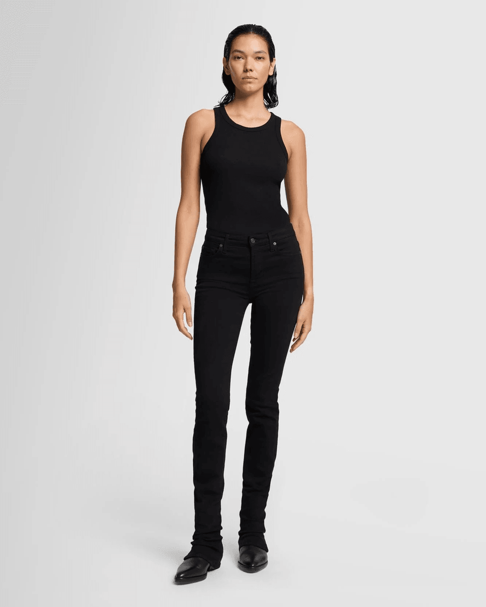 The 7 For All Mankind Stacked Skinny in Gloom Gloom combines the essence of classic denim with modern style. Its sleek mid-rise fit hugs your curves while providing the flexibility you need for daily activities. The subtle stretch ensures a comfortable fit that moves with you, making it perfect for everything from casual outings to dressed-up events.