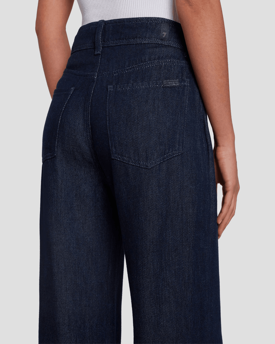 Elevate your wardrobe with the 7 For All Mankind Tailorless Denim Lustre Dojo Trouser in Dark Rinse. This stunning trouser jean is designed for the modern woman who values style and comfort. Its wide leg and subtle flare create a long, lean silhouette, making it an essential addition to any fashion-forward closet.