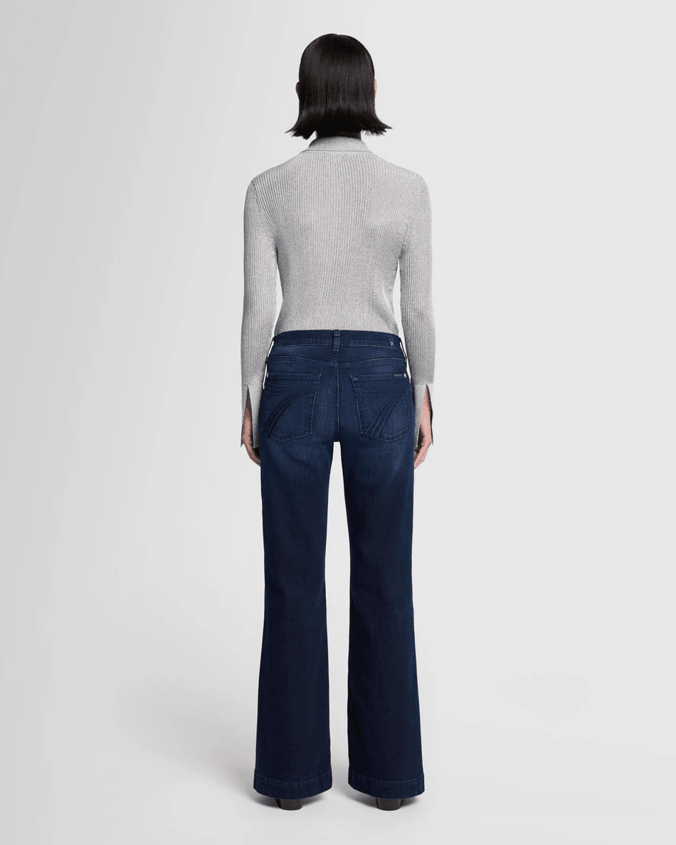 The 7 For All Mankind Tailorless Dojo in Atlas Atlas combines style and functionality. The inky blue wash features subtle whiskering and sanding along the thighs, adding a touch of sophistication. With embroidered 7 back pockets in tonal navy stitch and a wide trouser hem detail, these jeans are perfect for both casual outings and dressier occasions.