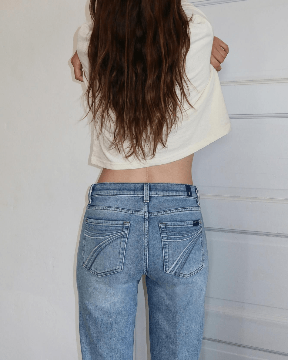Elevate your denim collection with the 7 For All Mankind Tailorless Dojo in Santa Rosa. This stylish piece combines a mid-rise wide-leg fit with a full-length, tailorless inseam, designed to effortlessly create a leg-lengthening silhouette without the hassle of alterations.