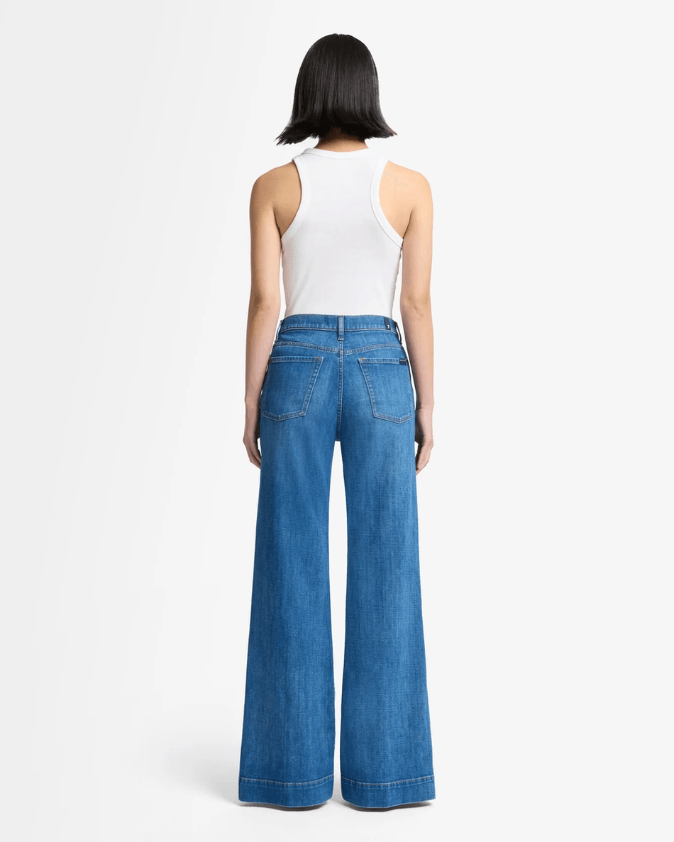 Elevate your denim collection with the 7 For All Mankind Tailorless Left Hand Modern Dojo in Nevada. This high-rise wide-leg fit is designed to create a stunning, leg-lengthening silhouette without the hassle of alterations. Experience the perfect blend of style and comfort, making it a must-have for any fashion-forward wardrobe.