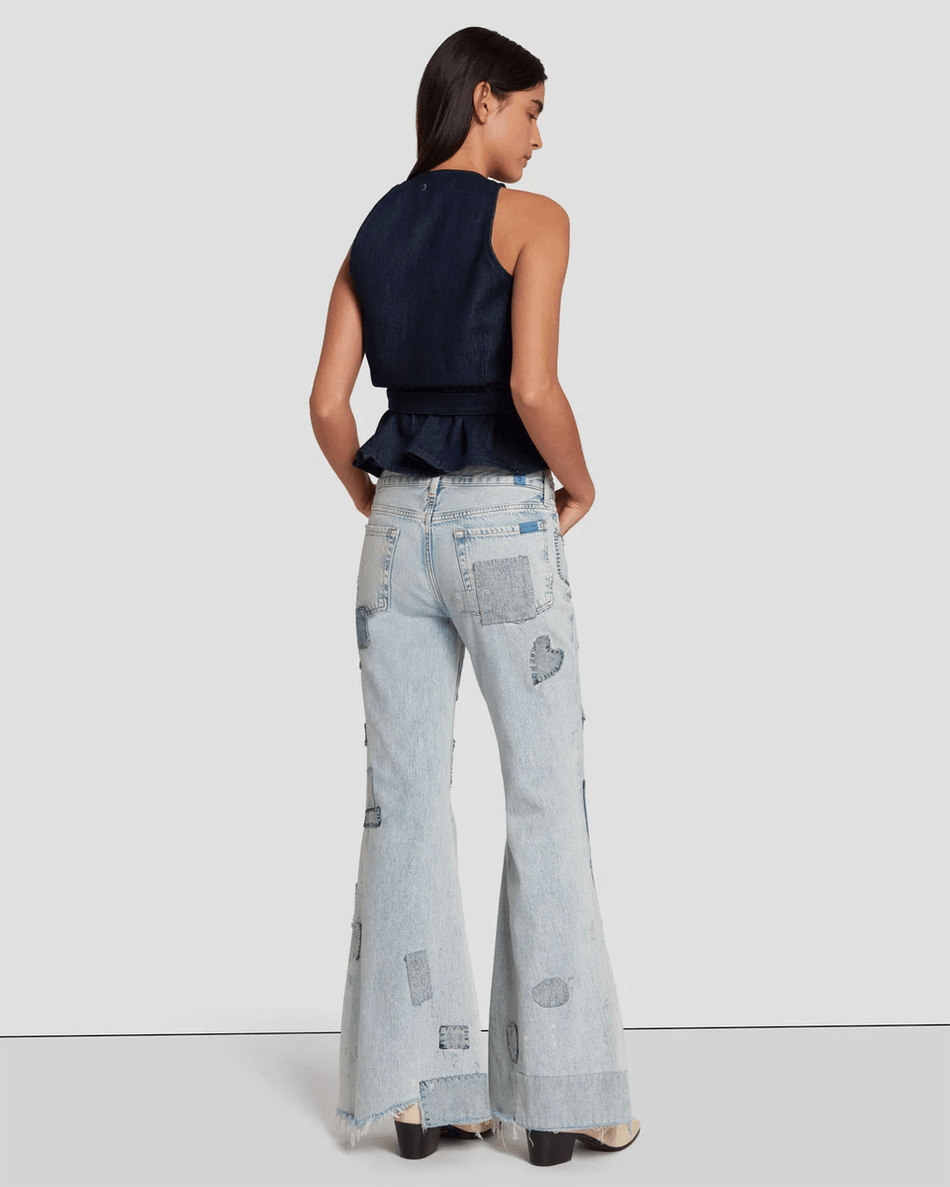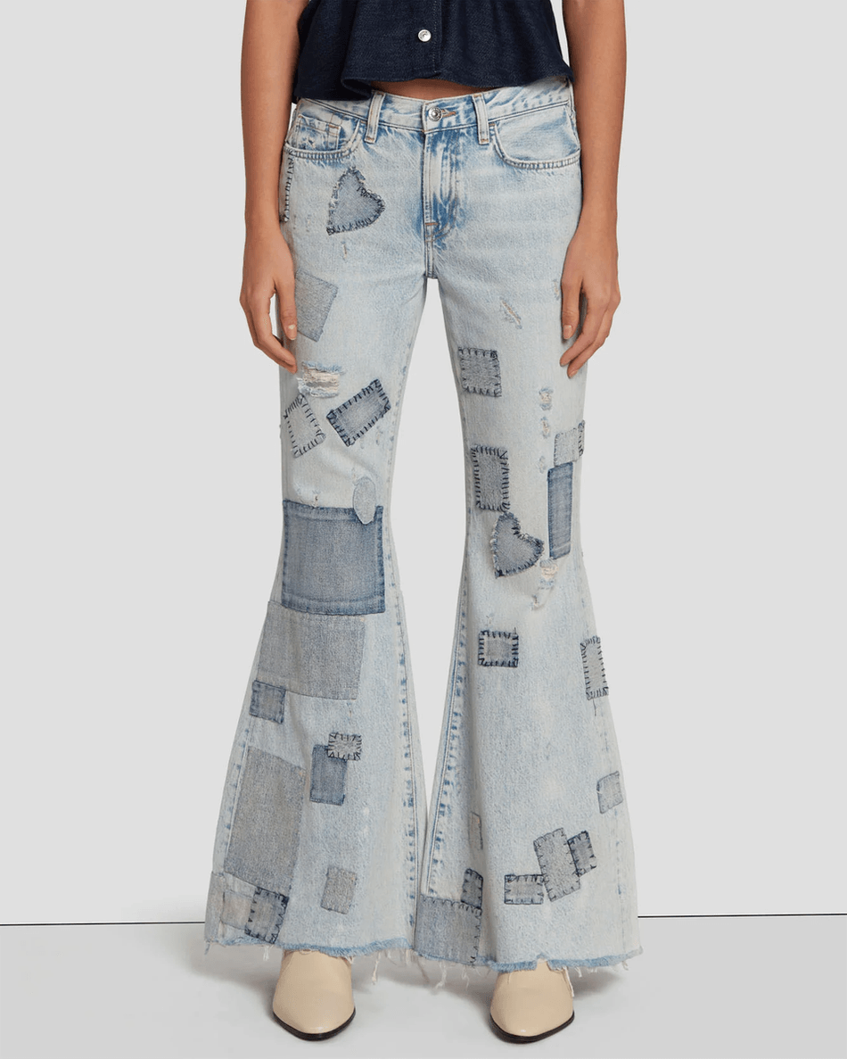 Discover the 7 For All Mankind Tailorless Low Rise Flare in Iris Patchwork