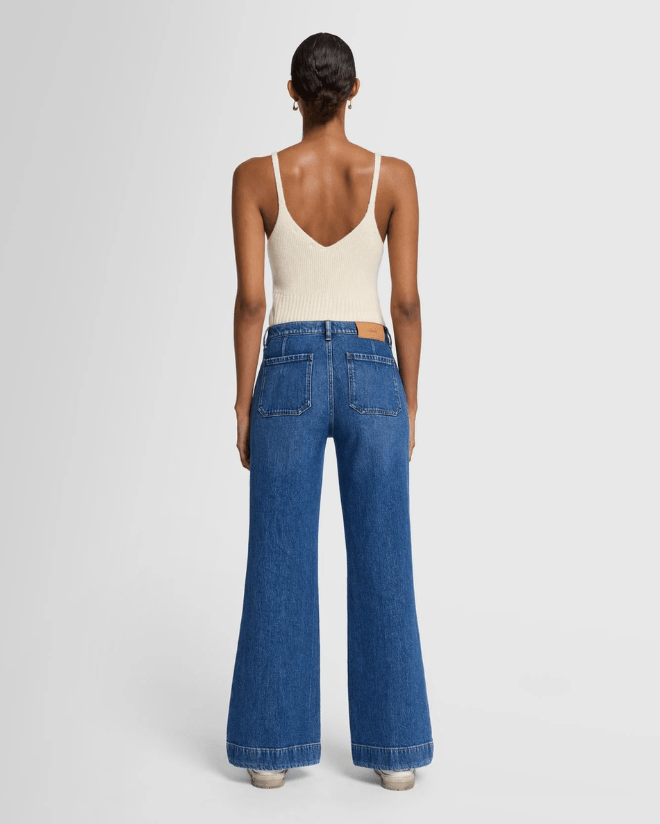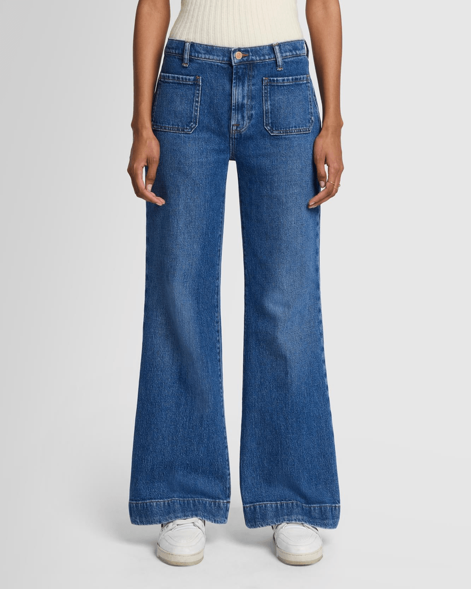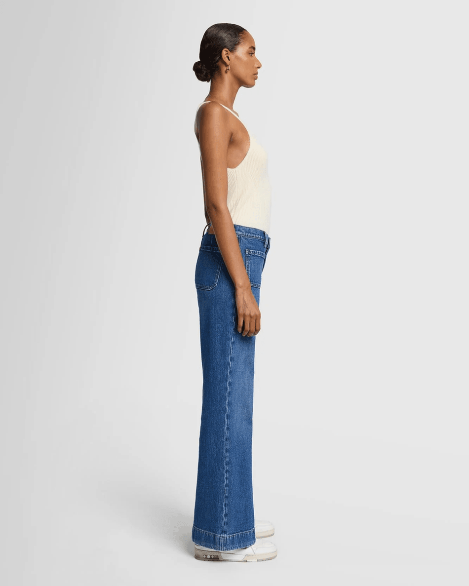 The 7 For All Mankind Tailorless Modern Dojo in Santa Cruz is tailored for those who value both style and functionality. Fitted through the hips and thighs, these jeans showcase a wide flare leg finish that flatters every figure. The classic denim feel combined with a hint of stretch ensures all-day comfort, making them ideal for both casual outings and more polished occasions.