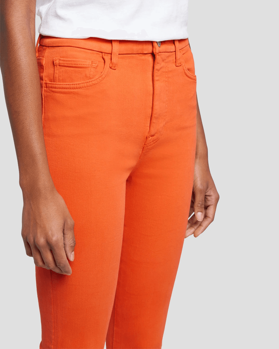 Elevate your style with the 7 For All Mankind Tailorless No Filter UHR Skinny Bootcut in Koi Koi. This stunning piece combines a bold hue with a modern silhouette, ensuring you stand out effortlessly. Designed with a shorter inseam, this ultra-high-rise skinny bootcut jean is perfect for fashion-forward individuals.