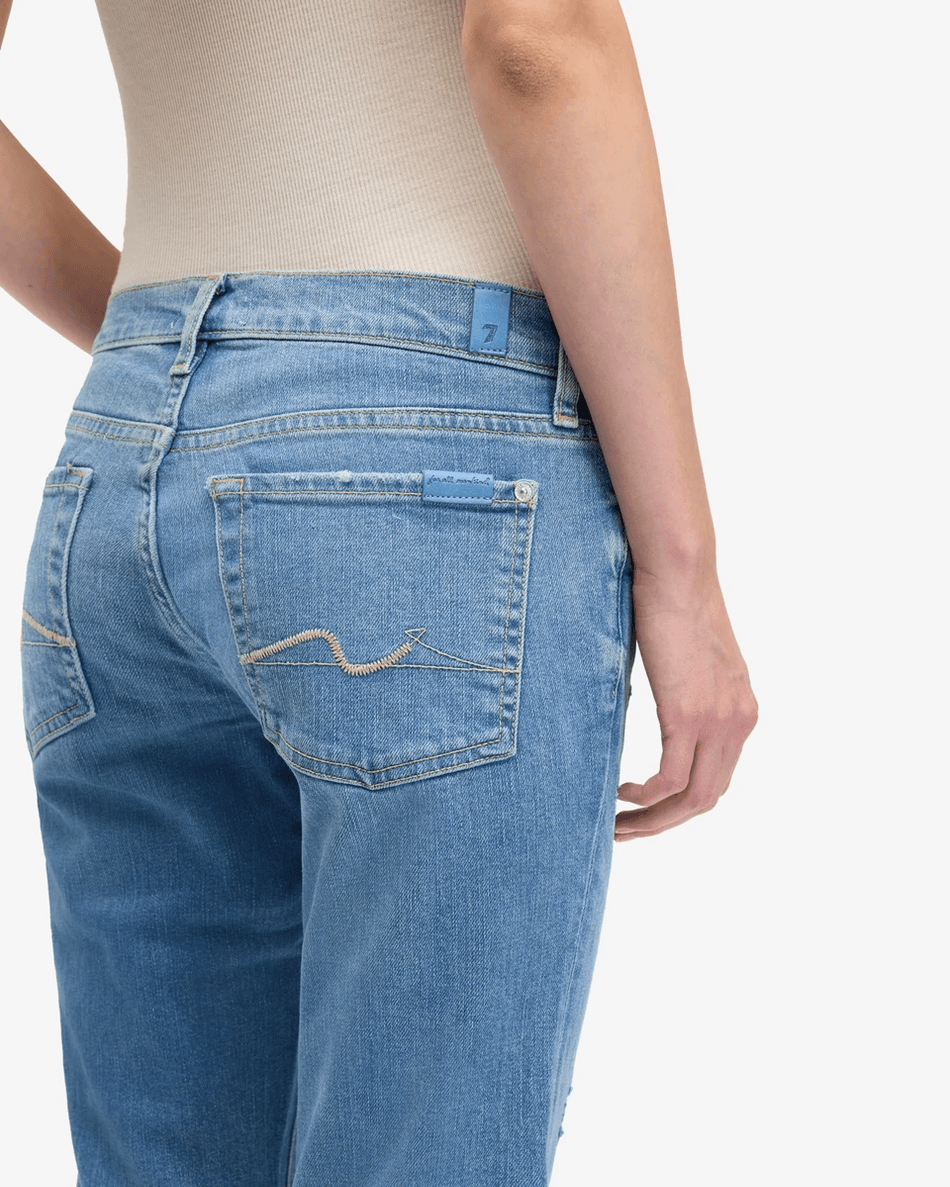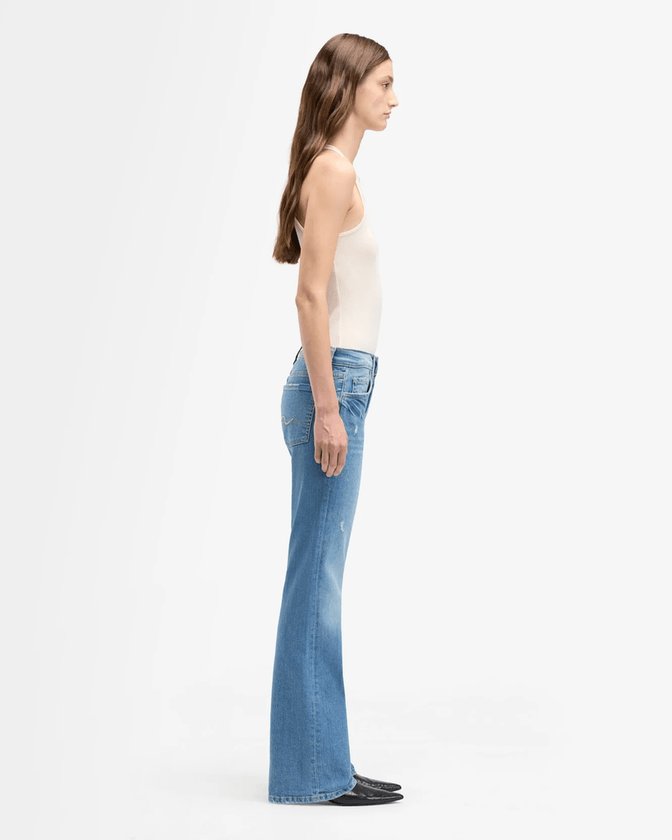 Elevate your denim collection with the 7 For All Mankind Tailorless Original Bootcut in Summer Fig. This low-rise bootcut jean combines classic style with modern comfort, making it a staple for every wardrobe.