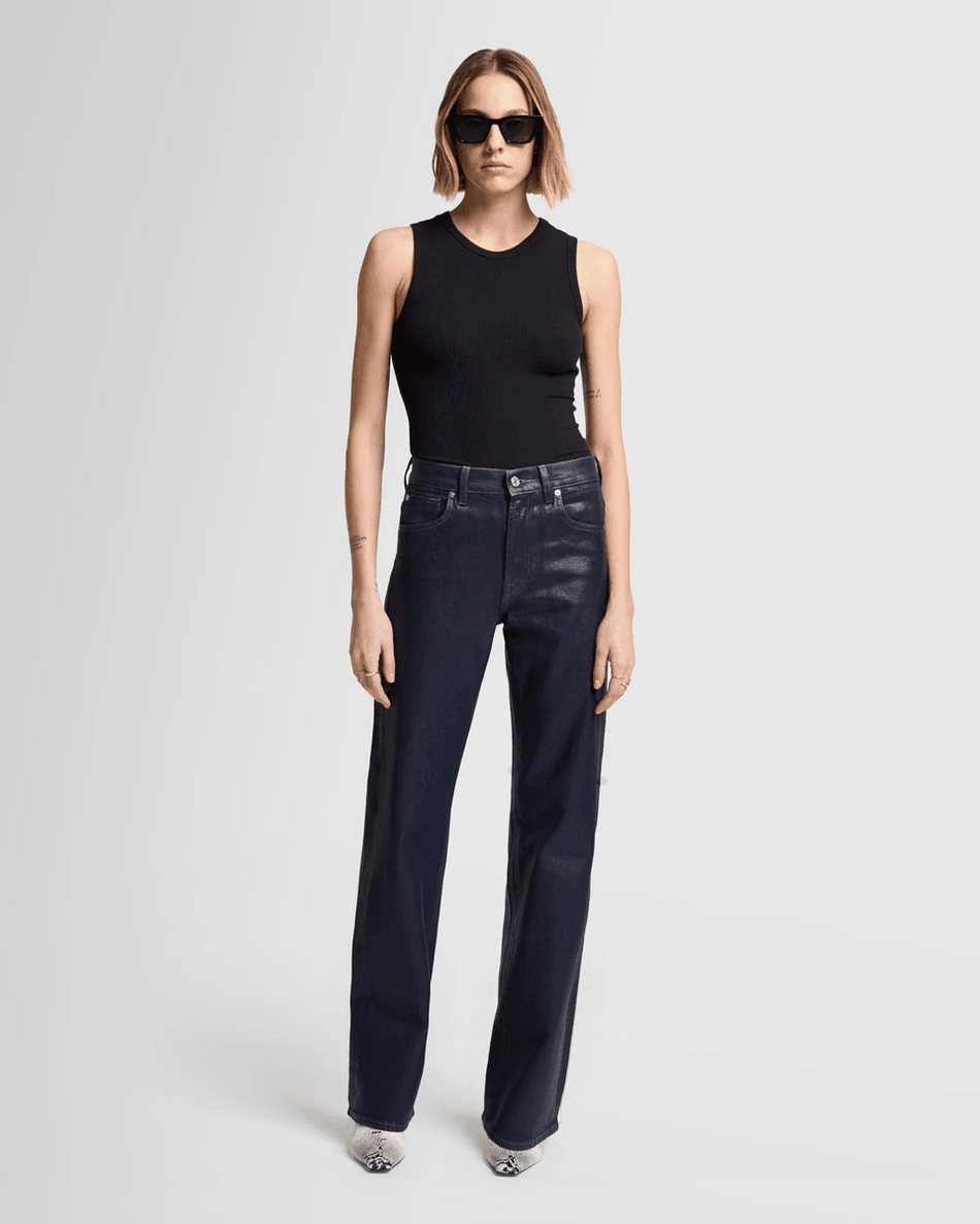 Elevate your wardrobe with the 7 For All Mankind Tess Trouser in Coated Moonshine. This high-rise, full-length straight leg trouser combines style and comfort, offering a slightly relaxed fit that flatters every silhouette. Crafted from classic, rigid denim, these trousers are designed to get better with every wear.
