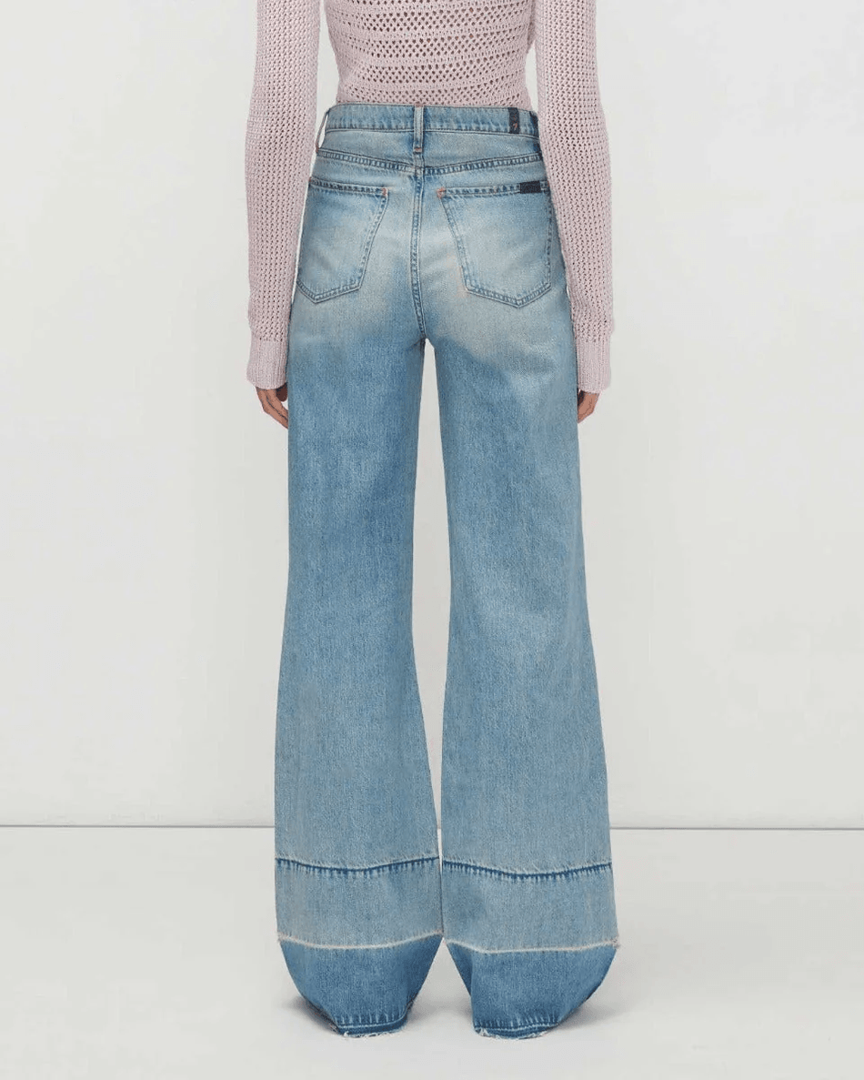 Step back into the style of the '70s with the 7 For All Mankind Ultra High Rise Jo In Glory Blue Rigid. These ultra high-rise jeans feature a super wide-leg cut that perfectly captures the essence of vintage fashion while offering modern comfort. Crafted from soft, rigid denim, they deliver an authentic look that stands out in any wardrobe.