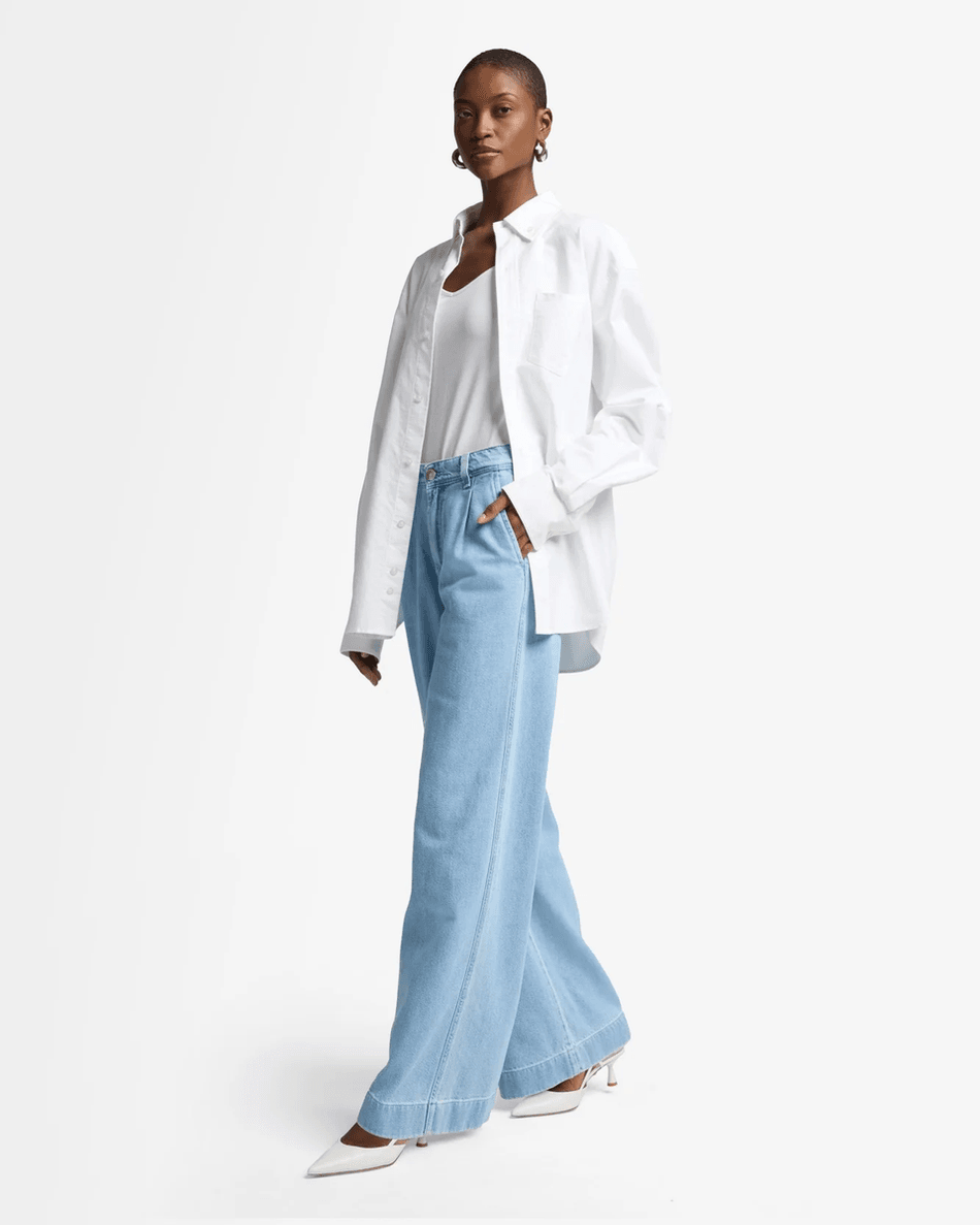 Experience unparalleled comfort and style with the 7 For All Mankind Weightless Pleated Denim Trouser in Hana Hana. Designed for the modern woman, these high-rise trousers offer a sophisticated silhouette that effortlessly elevates any outfit.