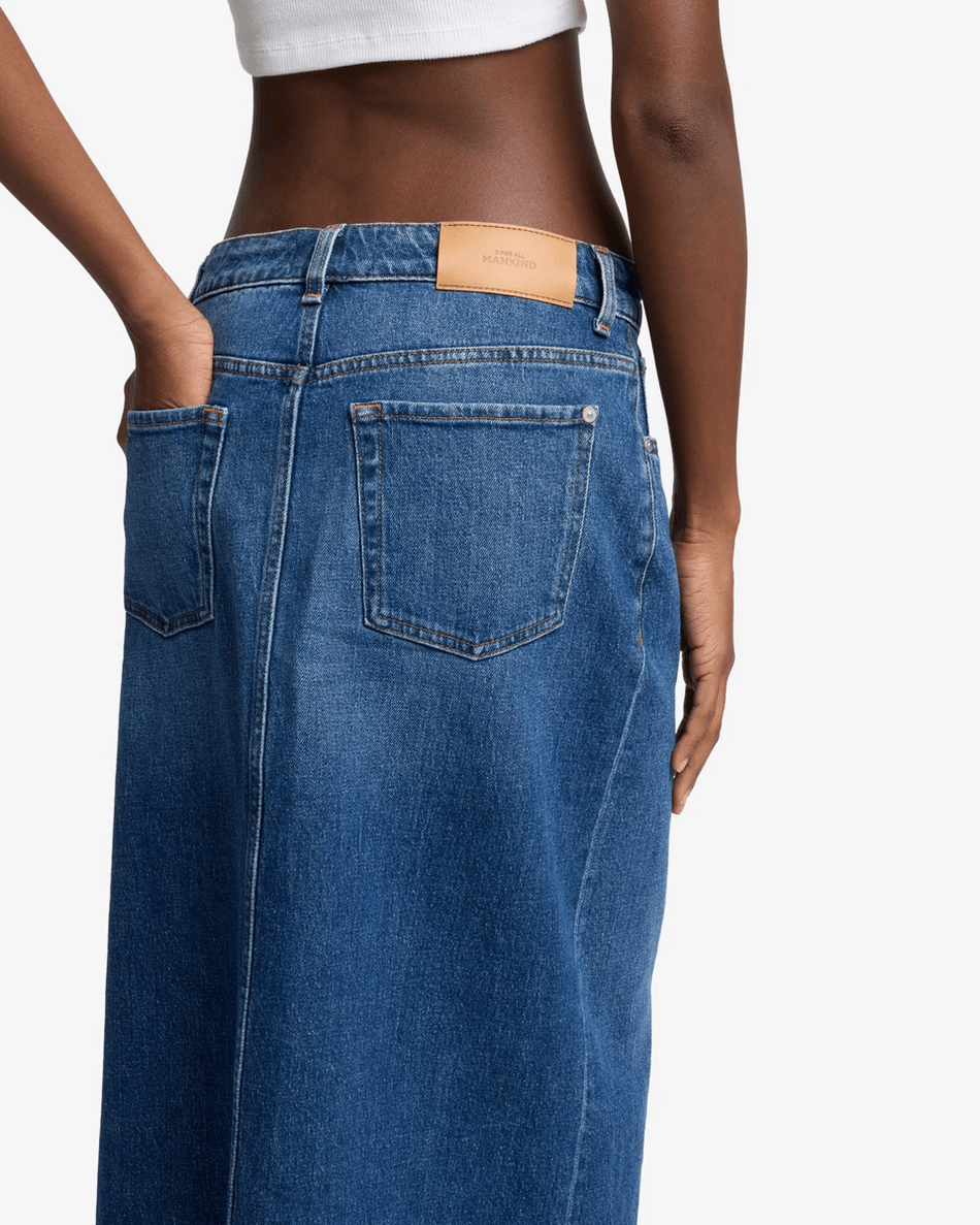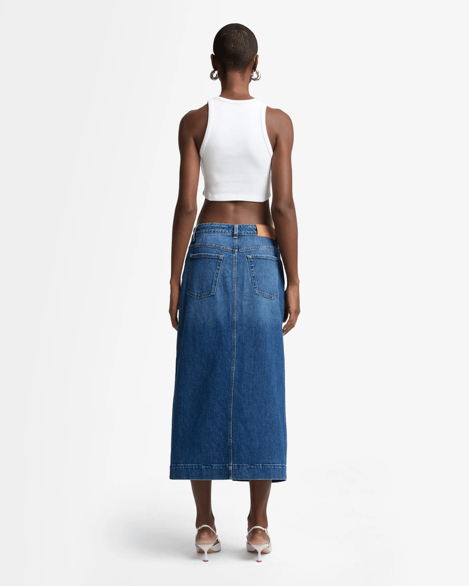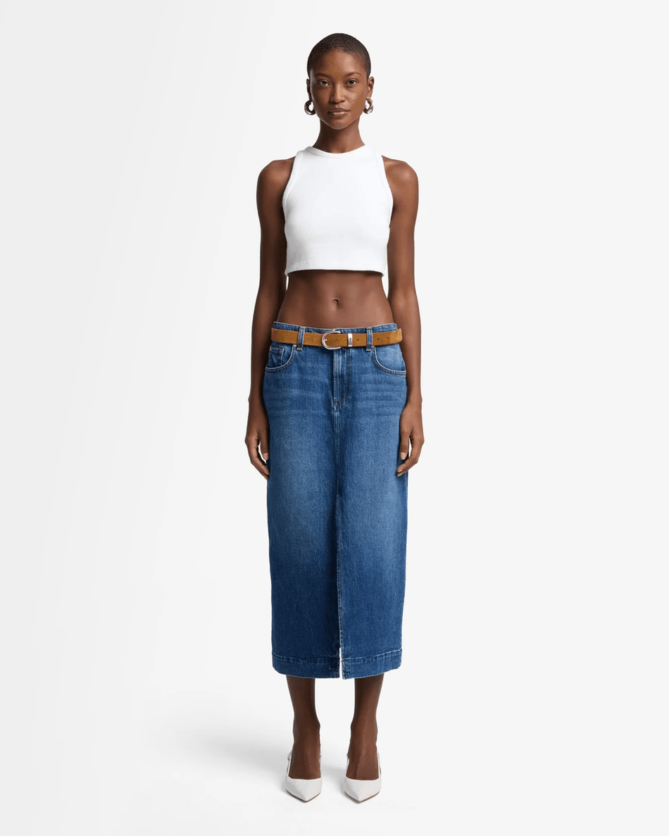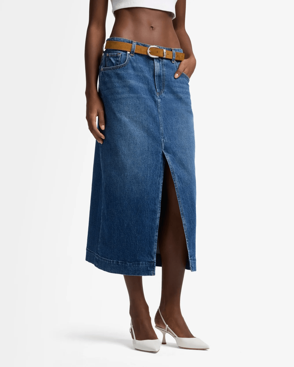Discover the 7 For All Mankind Amber Denim Midi Skirt in Artifact