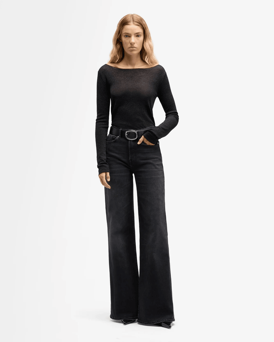 Elevate Your Wardrobe with the 7 For All Mankind Boatneck Sweater in Black Lurex