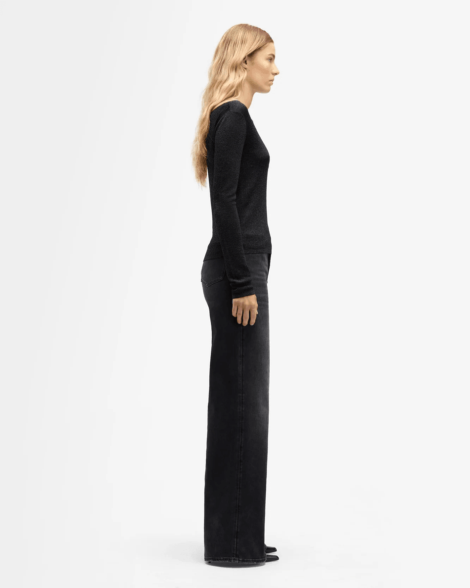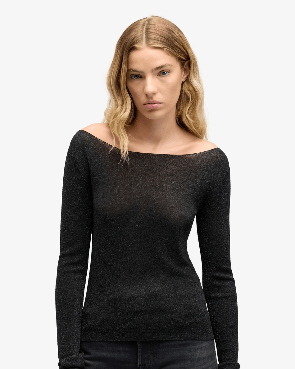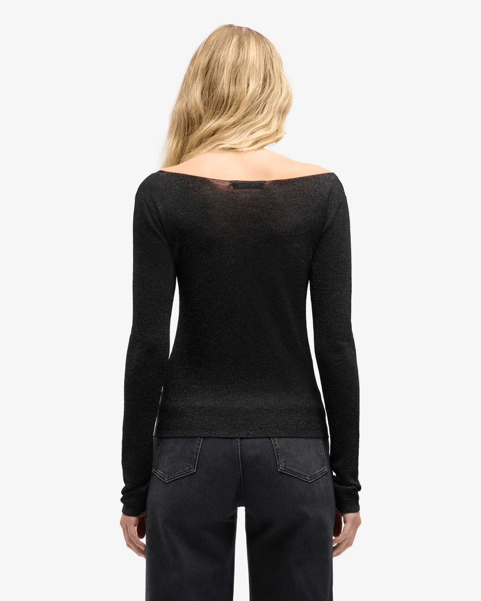 7 For All Mankind Boatneck Sweater in Black Lurex Black Lurex