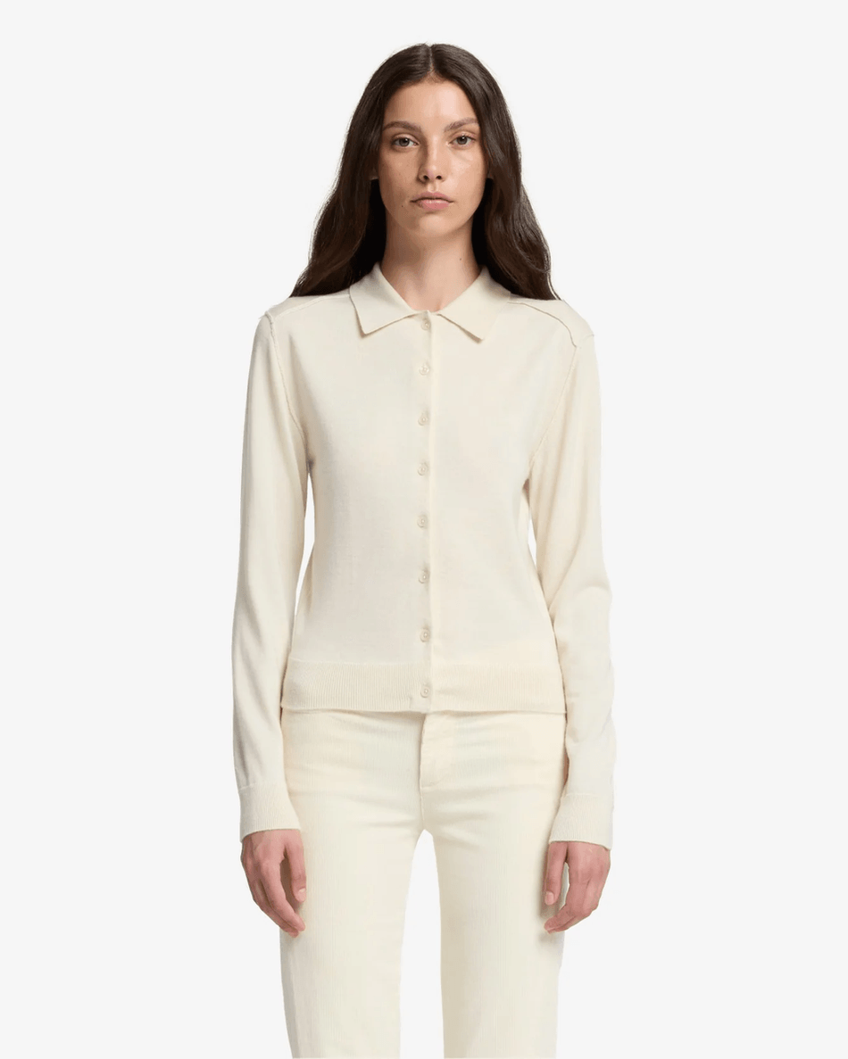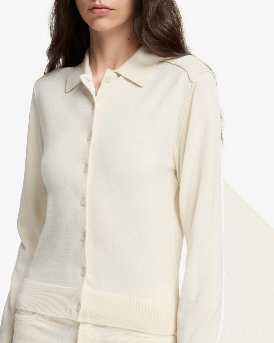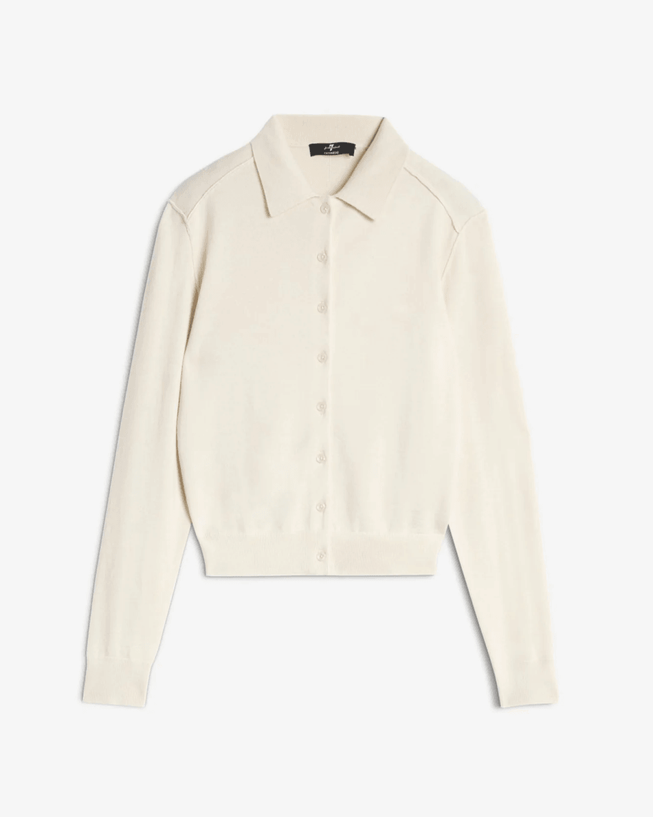 Elevate Your Style with the 7 For All Mankind Cashmere Polo Cardigan in Ice White