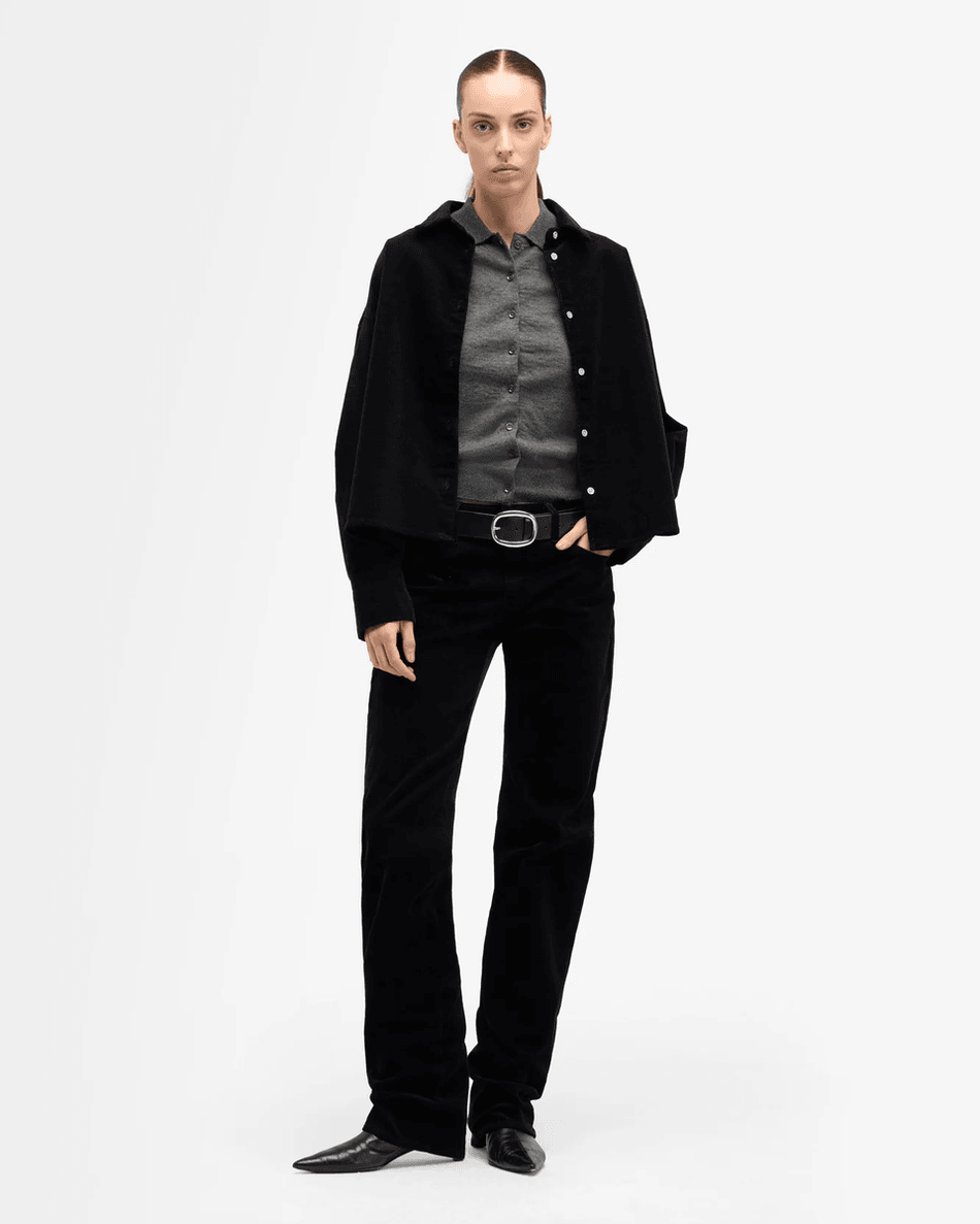 - Thoughtful Details: Features a point collar, front button closure, and fine ribbing.