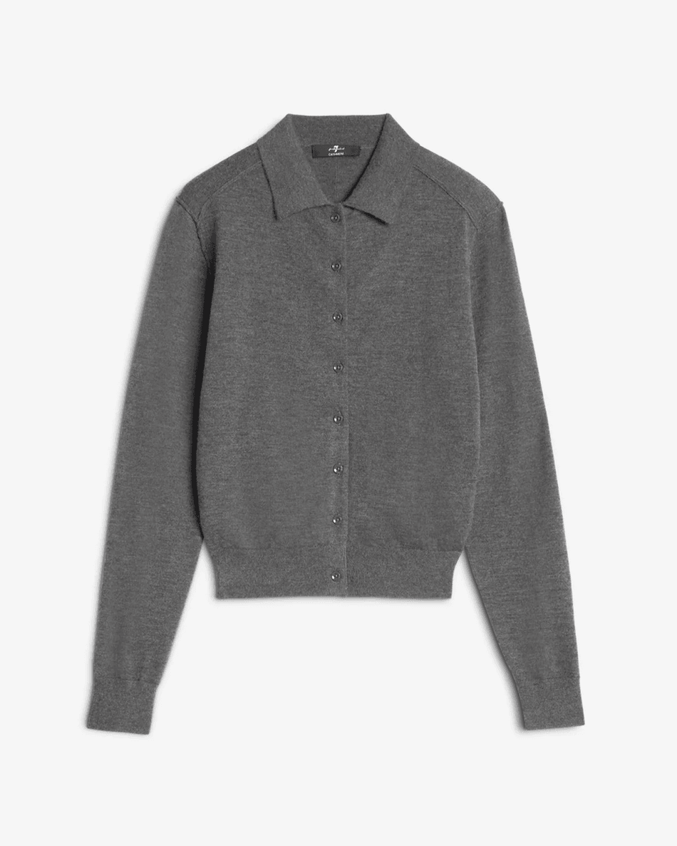 Discover the Elegance of the 7 For All Mankind Cashmere Polo Cardigan in Korat Korat