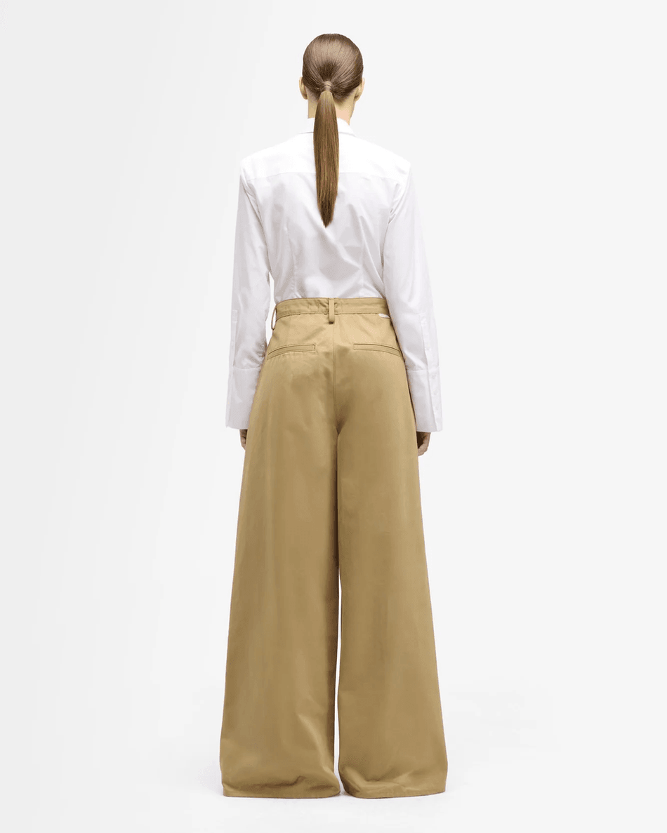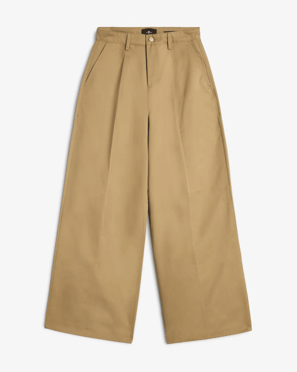 Discover the 7 For All Mankind Comfort Twill Pleated Wide Leg Trouser in Sand Storm
