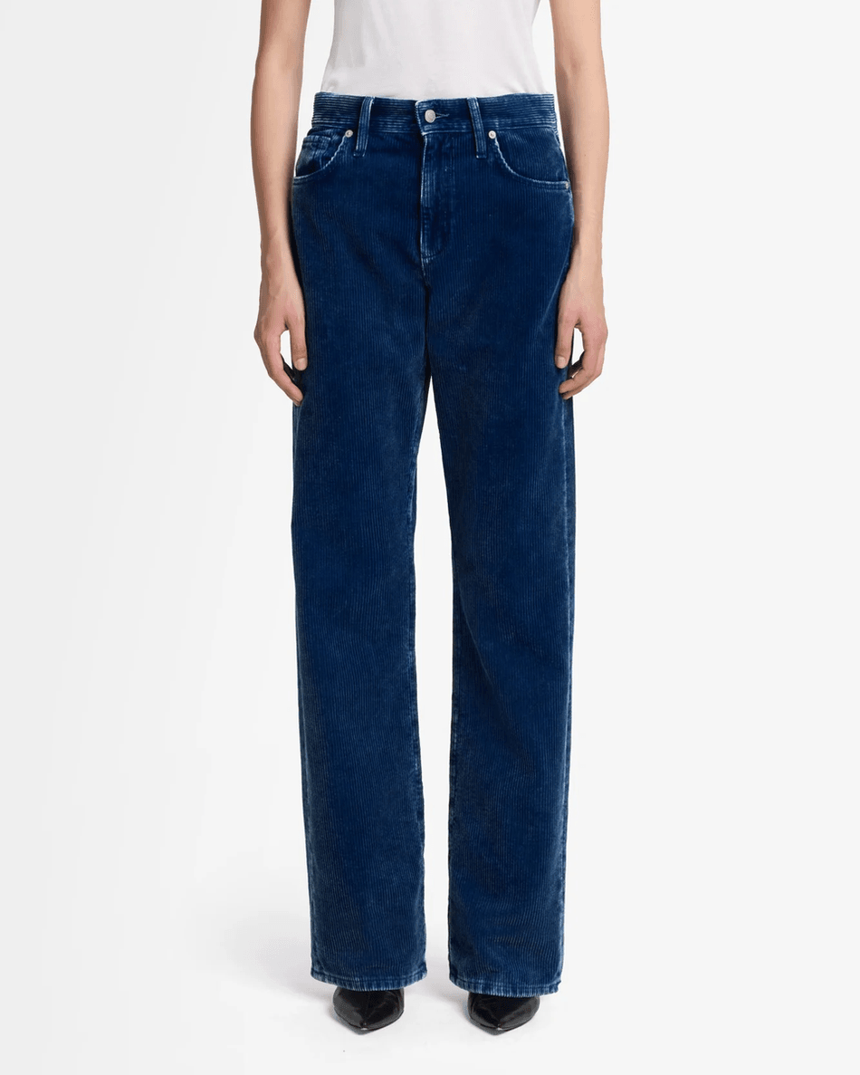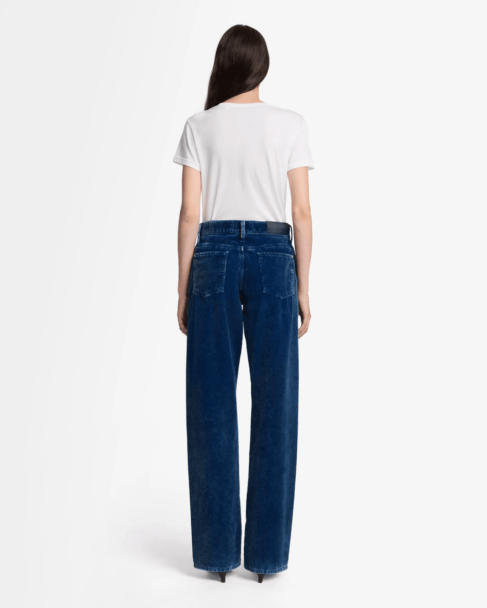 The 7 For All Mankind Corduroy Tess Trouser in Oxnard features a full-length silhouette that combines timeless style with contemporary comfort. Crafted from rich indigo corduroy, these trousers provide a soft ribbed texture that feels amazing against your skin. The zip fly with button closure ensures a secure fit, while the clean back pocket adds a touch of sophistication.