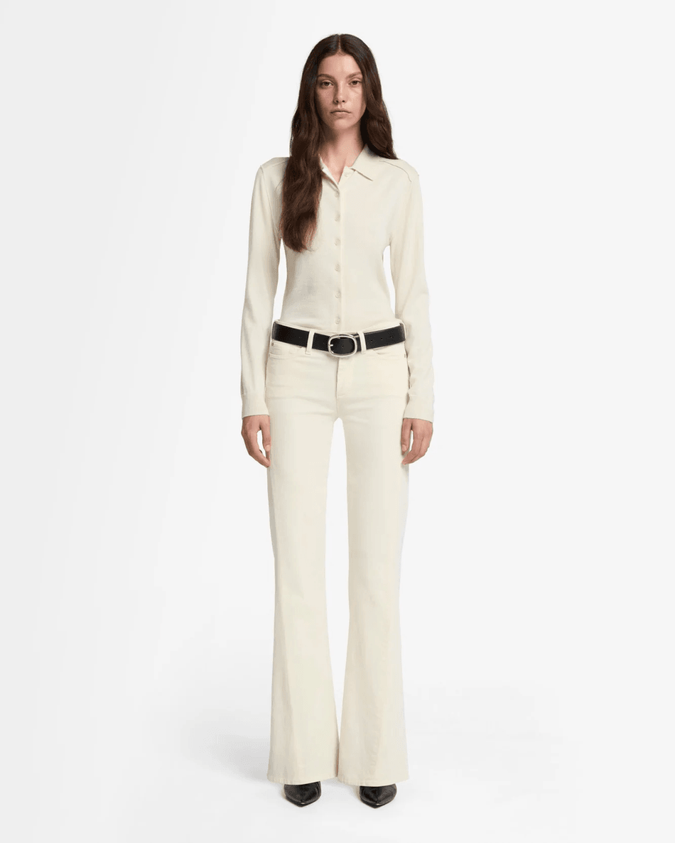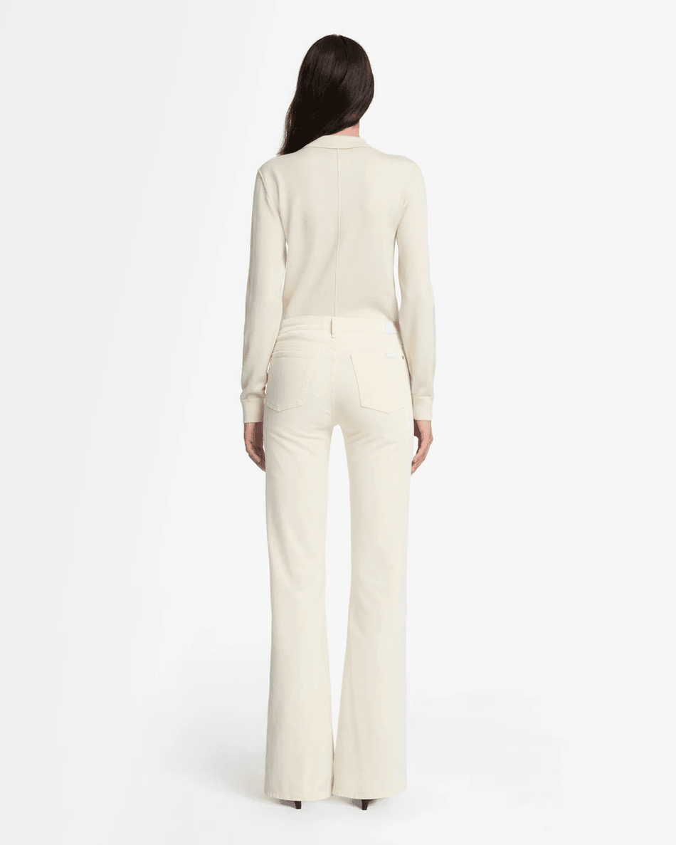 Elevate your style with the 7 For All Mankind Corduroy Twisted Tailorless Dojo in Eggshell. This stunning piece combines comfort and chic design, perfect for any fashion-forward wardrobe. Experience a unique high-rise, wide-leg silhouette that redefines casual elegance.