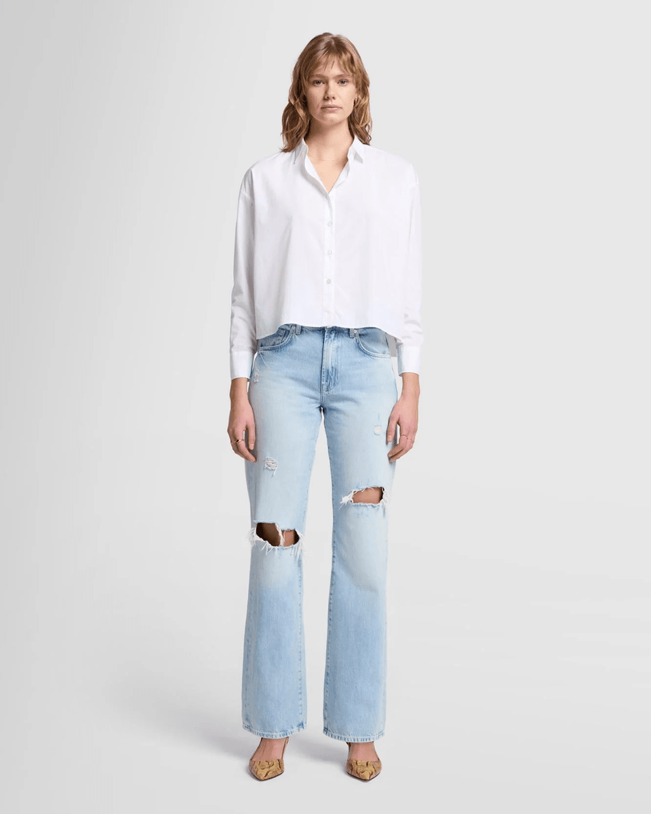 Don't miss out on the chance to refresh your wardrobe with the 7 For All Mankind Cropped Poplin Button Down in White. Add it to your cart today and experience the perfect blend of style and comfort!