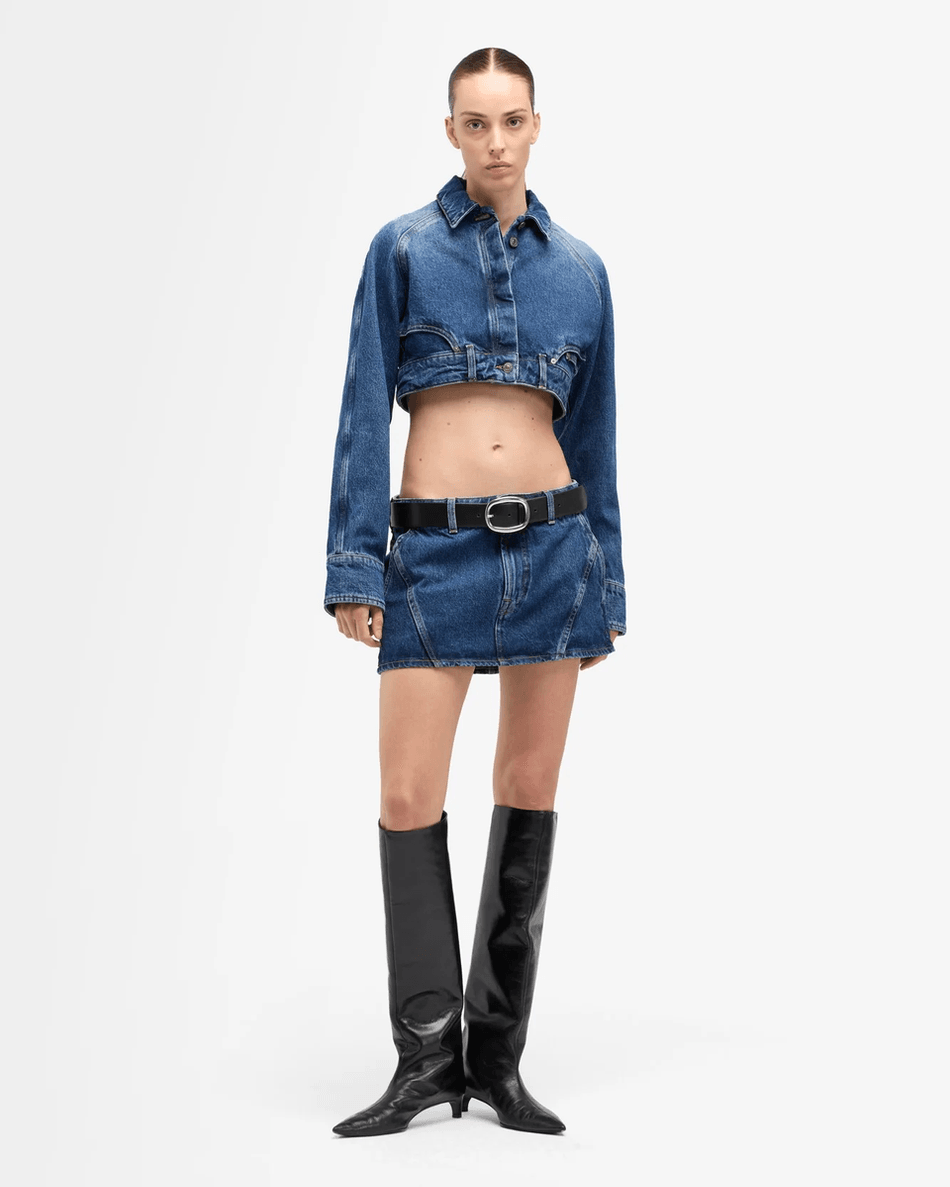 Discover the 7 For All Mankind Denim Cropped Jacket in Waivy Waivy