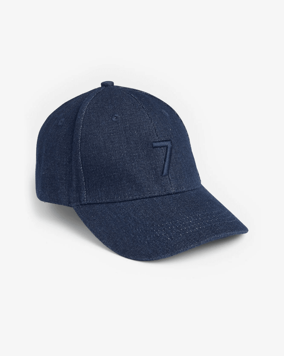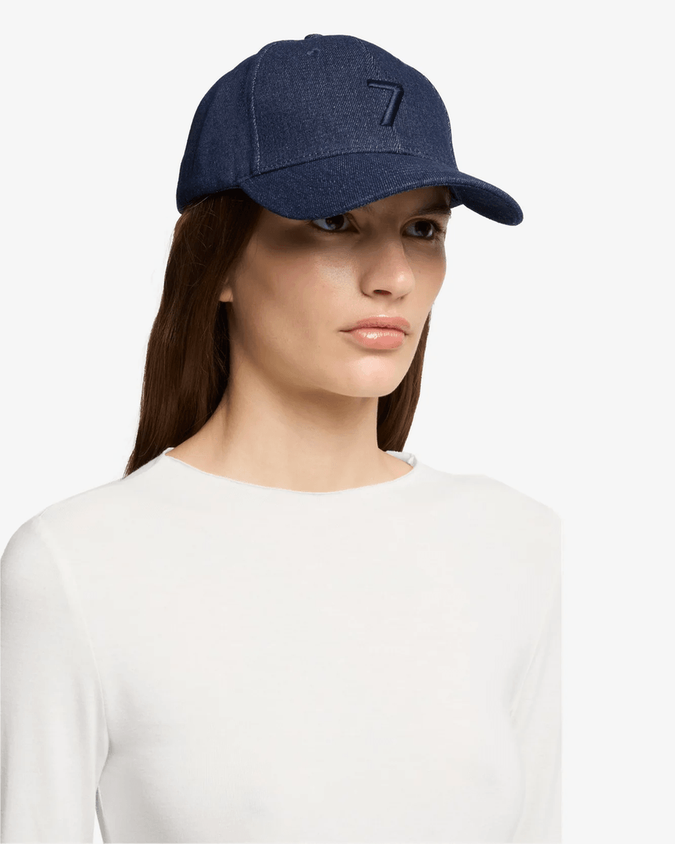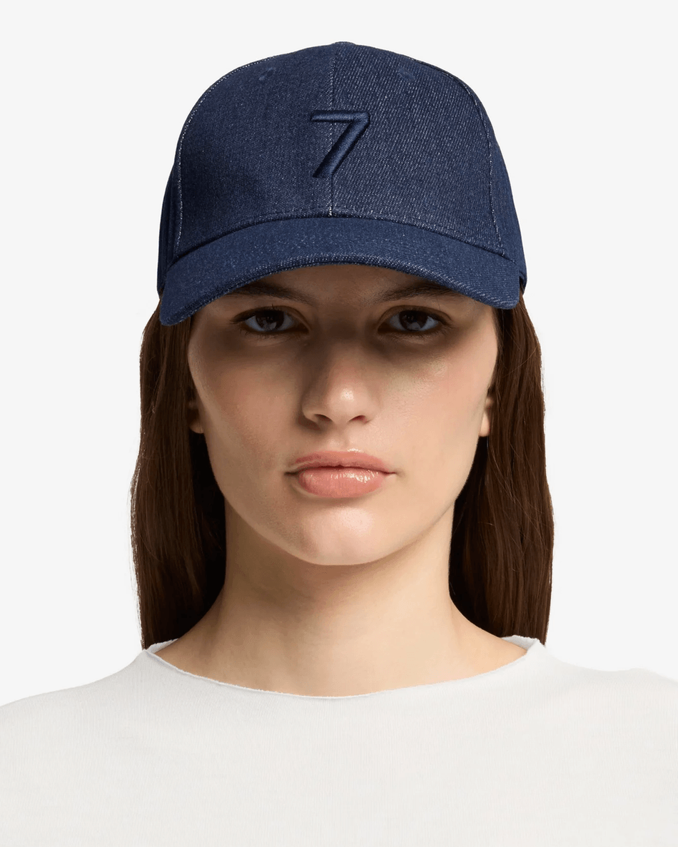 Discover the 7 For All Mankind Denim Logo Cap in Rinsed Indigo