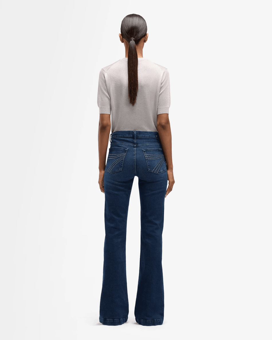 - Stylish Details: Features a dark wash with tonal stitching and signature 7 back pocket embroidery in metallic thread.
