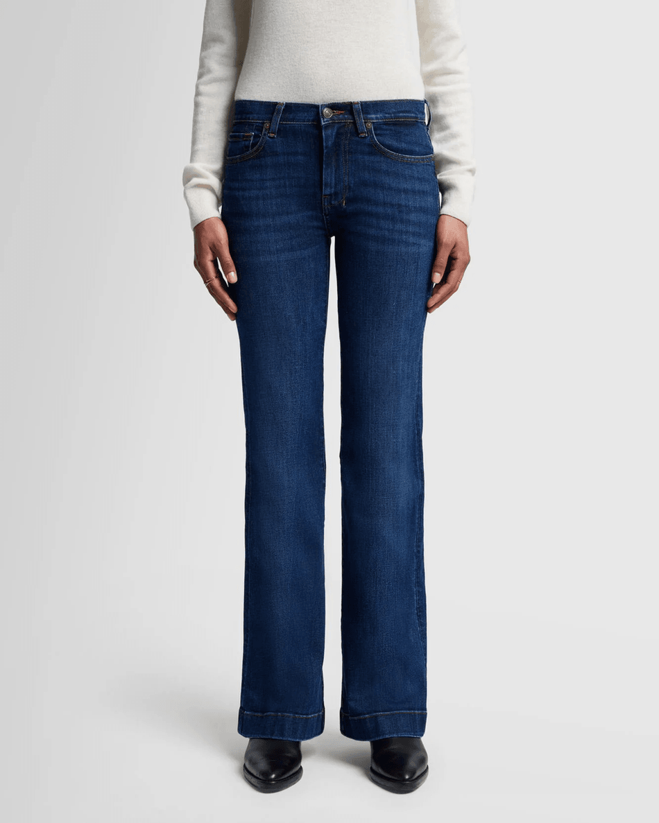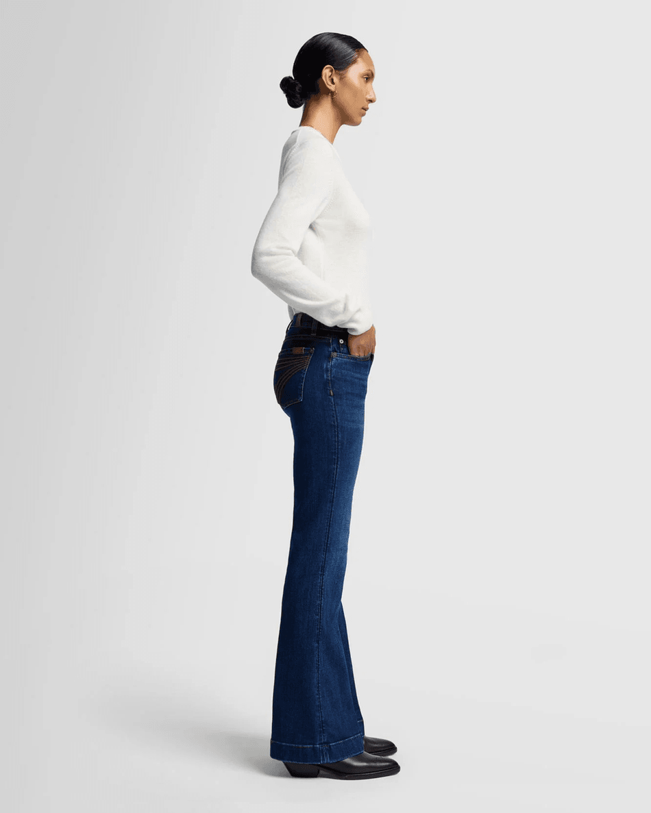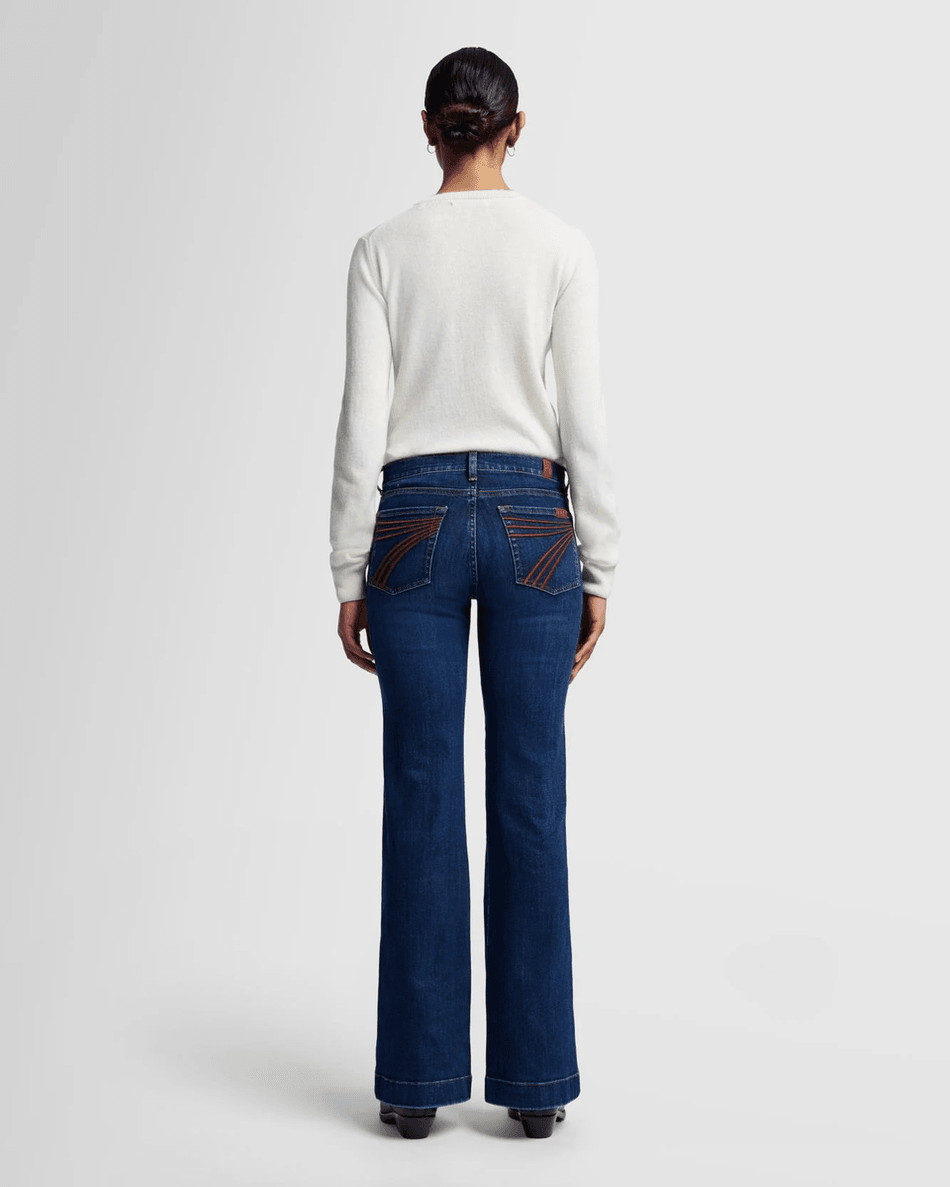 Elevate your denim collection with the 7 For All Mankind Heritage Dojo in Rebel Rebel. This stylish mid-rise jean is designed to fit beautifully, hugging your hips and thighs while offering a wide, full-length leg that creates a flattering, long silhouette.