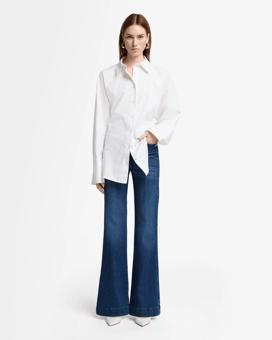 The 7 For All Mankind Heritage Modern Dojo in Soho Dark is your go-to choice for a modern look with a classic feel. The high-rise fit accentuates your waist, while the wide-leg design flatters your figure, making it ideal for both casual outings and dressier affairs. Crafted from premium denim, these jeans are designed to soften over time, ensuring you enjoy that perfect, broken-in wear without sacrificing structure.