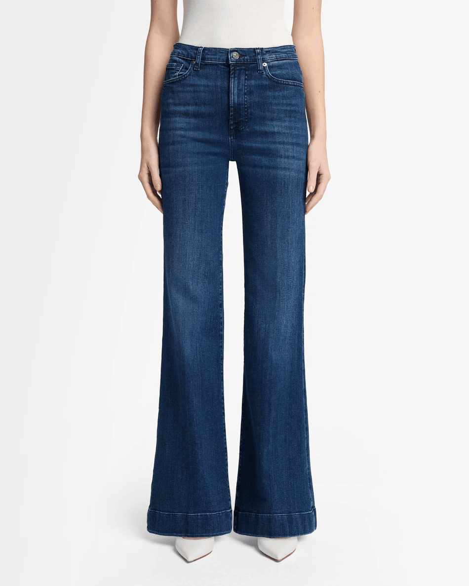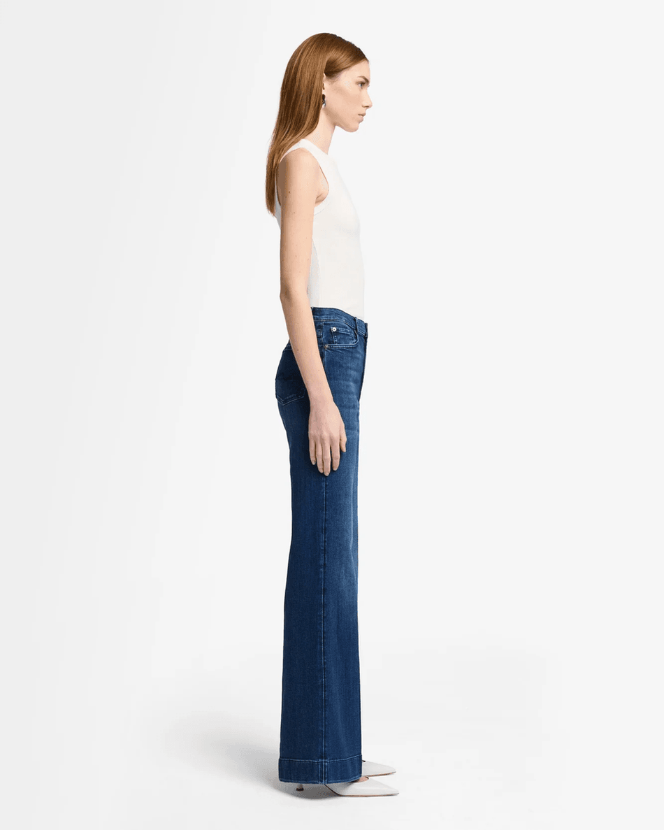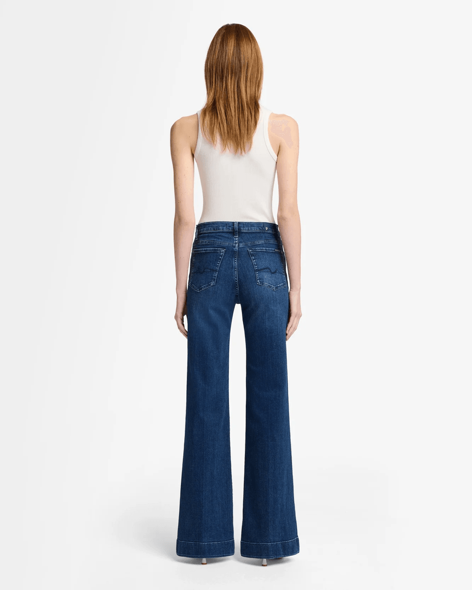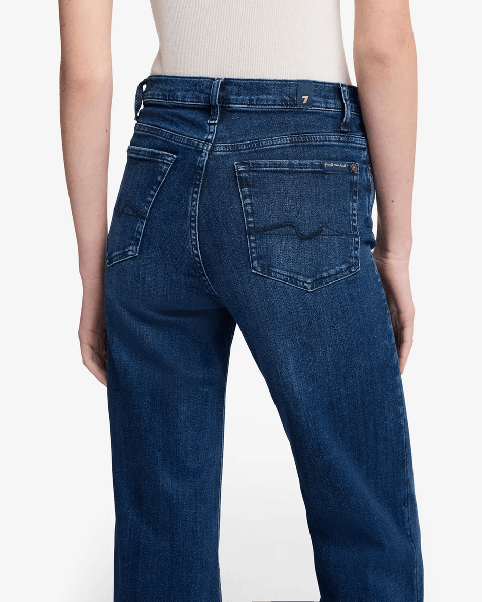 Step into style and comfort with the 7 For All Mankind Heritage Modern Dojo in Soho Dark. This high-rise, wide-leg jean is designed to elevate your wardrobe, creating a sleek, elongated silhouette that flatters every body type.