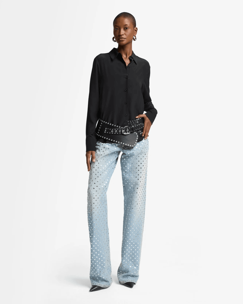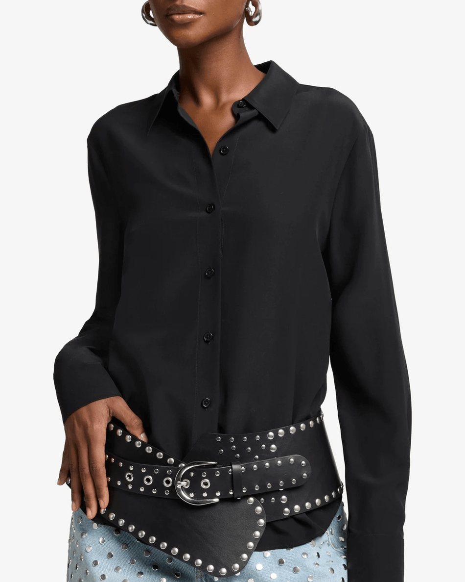 Discover the Elegance of the 7 For All Mankind Long Sleeve Silk Blouse in Black