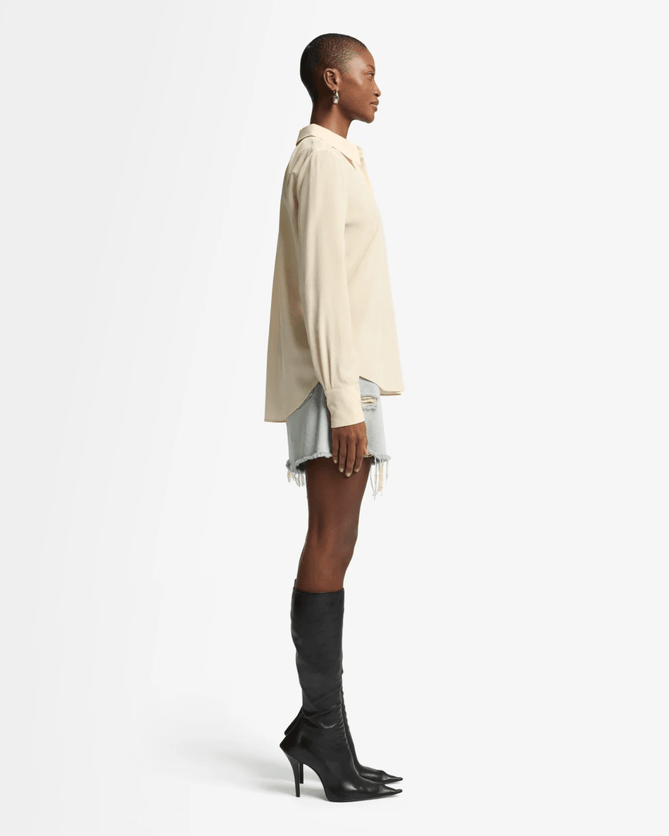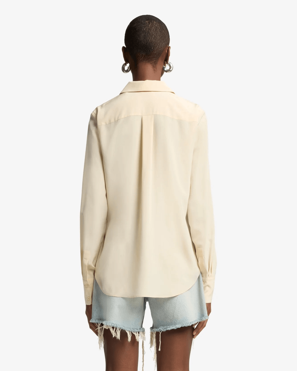 7 For All Mankind Long Sleeve Silk Blouse in Sand Sand