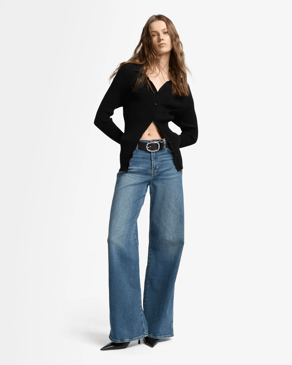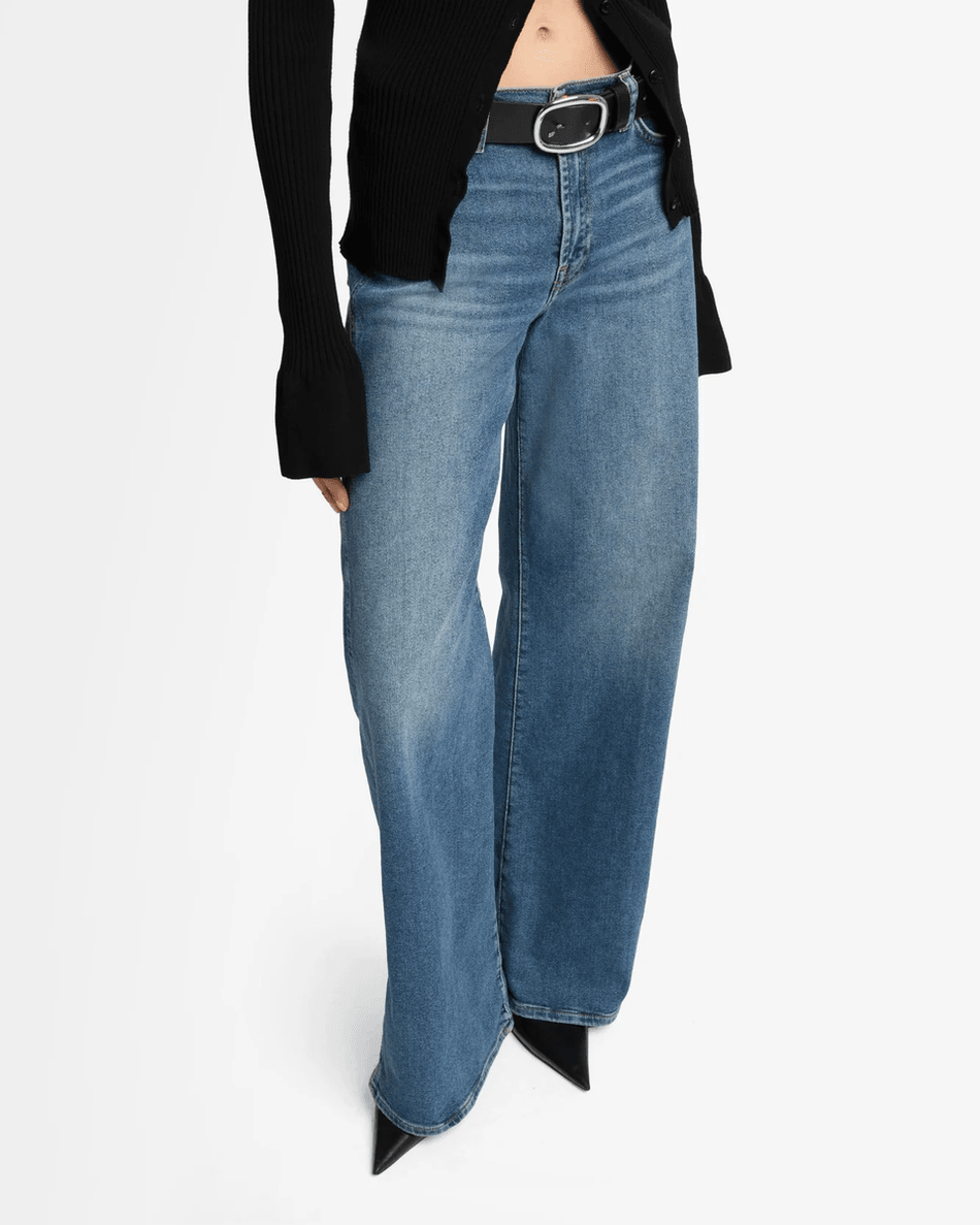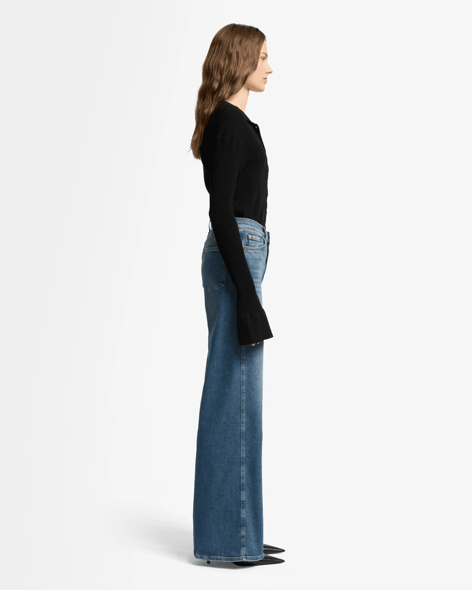 Elevate your wardrobe with the 7 For All Mankind Luxe Vintage Lotta in Sea Level. This high-rise wide-leg denim is designed for those who appreciate both style and comfort. Experience a bold yet relaxed look that flows effortlessly from the waist down.